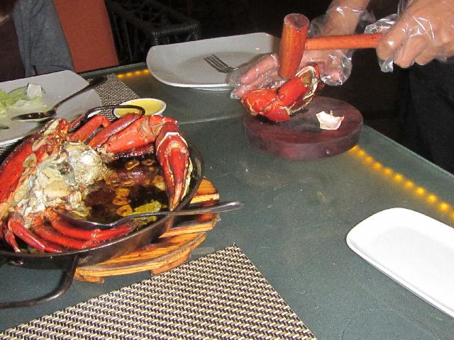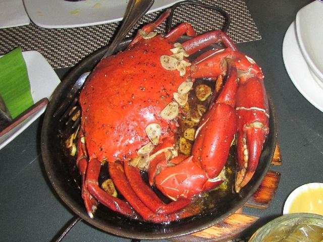 カニの調理法は、茹でたカニをオリーブオイルとガーリックで味付けし、