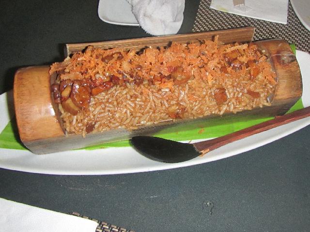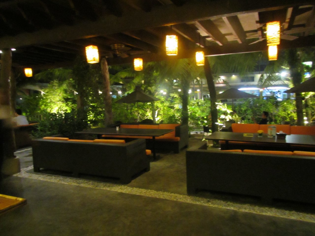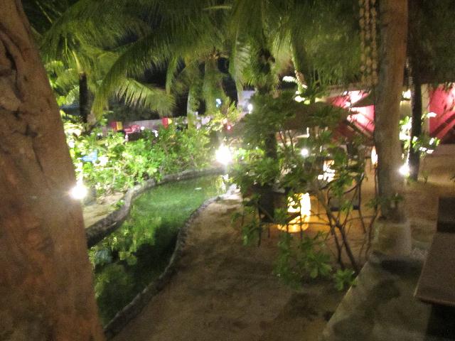 レストランの入口付近に、ホワイトサンドのミニビーチがあり、