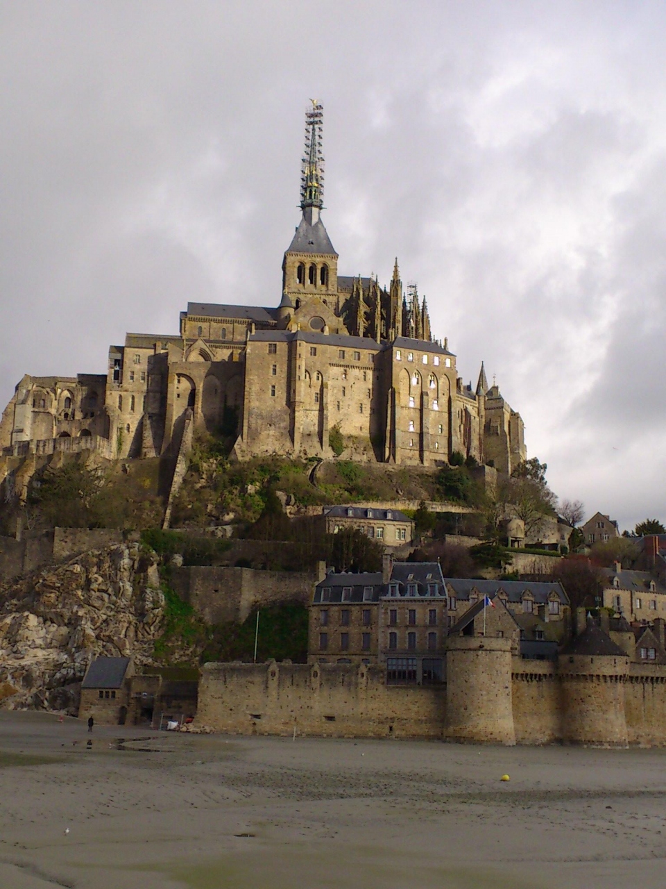 世界遺産のモンサンミッシェル修道院です。橋で繋がった島に対岸側から無料シャトルに乗って到着。岩山の上に建てられているので、城壁を登って行きます。入場料は9ユーロ、音声ガイドが2ヶで6ユーロでした。ラ・メルヴェイユ(驚嘆)と呼ばれている北面に位置する3層のゴシック様式の建築棟の部分が素晴らしいです。