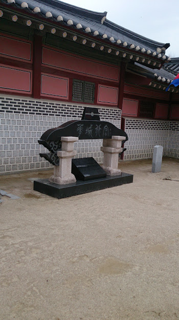 水原華城を全体を散策する中で立ち寄りました。訪問したのが土曜日のお昼前後でしたが、天気が怪しい感じだったためか、広い華城行宮の有料エリアには人影もまばらでした。日本でも放映されたチャングムの誓いのロケ地になった場所なので行宮内のあちこちに関連の等身大のボードなどが設置されています。しかしながら日に焼けて白茶けてしまっているのが痛々しい感じでした。行宮自体は想像以上に広くて、各エリアごとに区画されていて、人形などでその様子が再現されるなど、当時の様子がわかり易く展示されています。また、説明ボードについては日本語も併記されているのが良かったです。