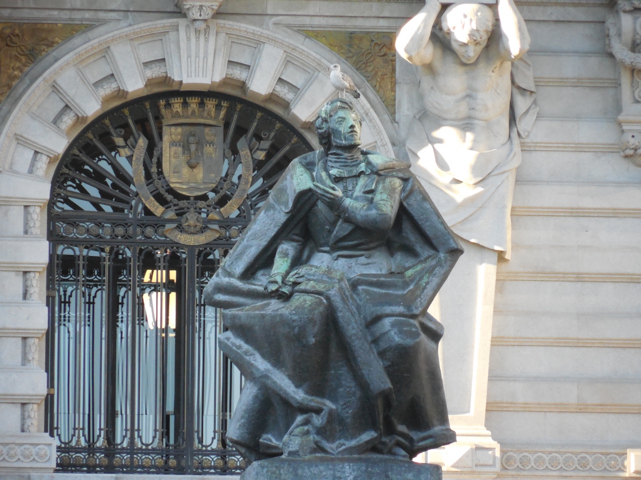 中央に高さ70mの時計台を頂くポルト市庁は1920年に施工が始まったが完成を見るにほぼ50年かかったとそうです。建築は、北フランスとフランダース地方の宮殿様式を取り入れていれ市庁舎正面に立つのは、19世紀を代表するポルト出身の文豪、Almeida Garrett=アルメイダ・ガレッットで不思議なポーズをしていました。中央の塔は180段の階段からなり、ポルトの街が一望できるが、一般公開はされていないようです。