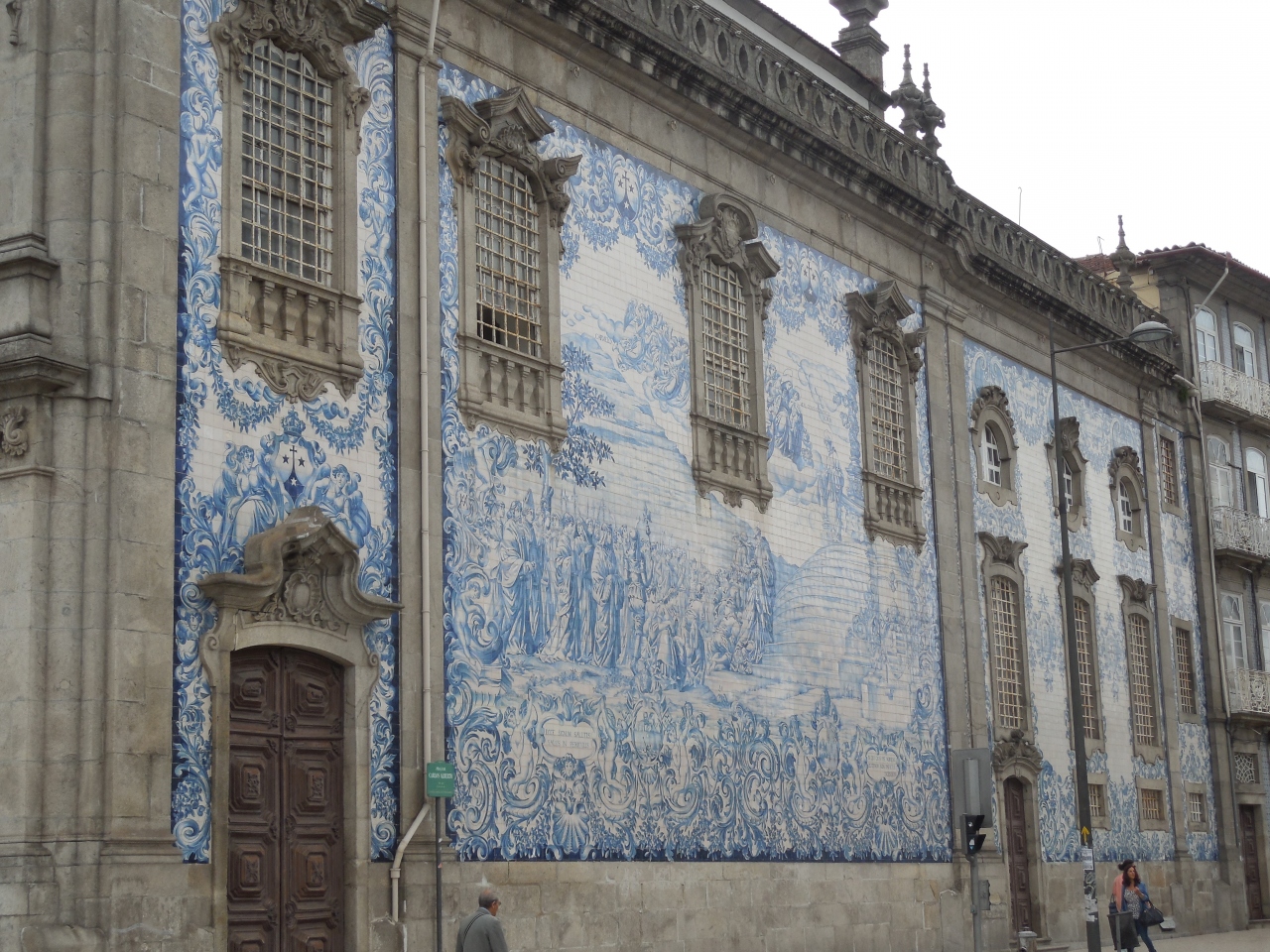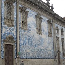 レロ・エ・イルマオンから歩いて3分ほどでした。正面は立派なハサードが目を引きますが、側面に回るとモンテ・カルメロでのクリスチャンたちを描いた20世紀初頭のアズレージョで飾られていて1912年に作成され、ポルトガル最大のものだそうです。