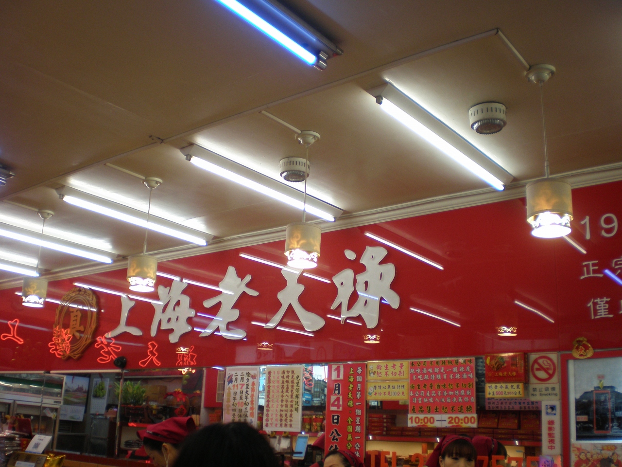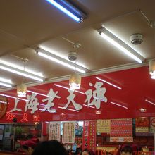 看板も店内も赤い。