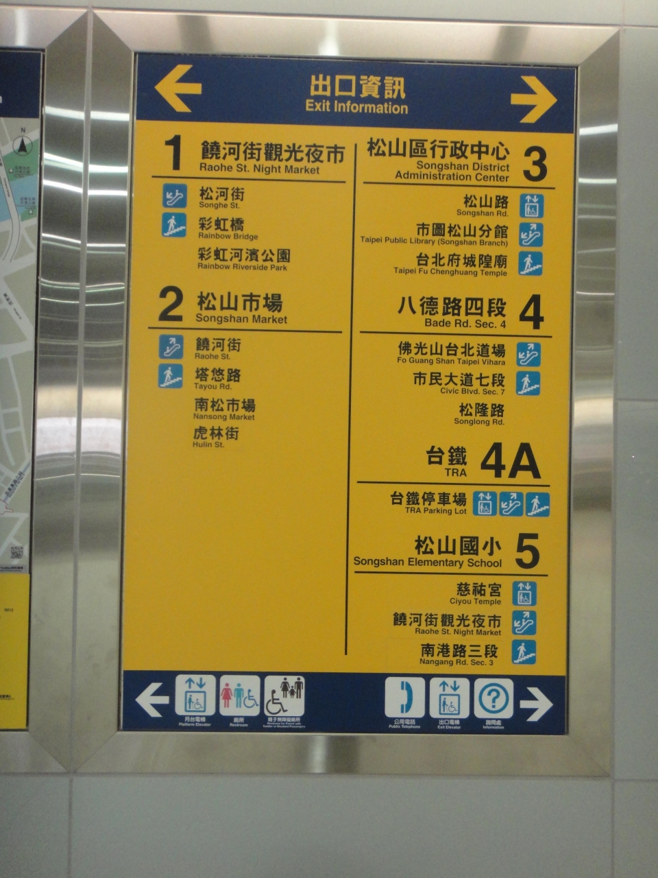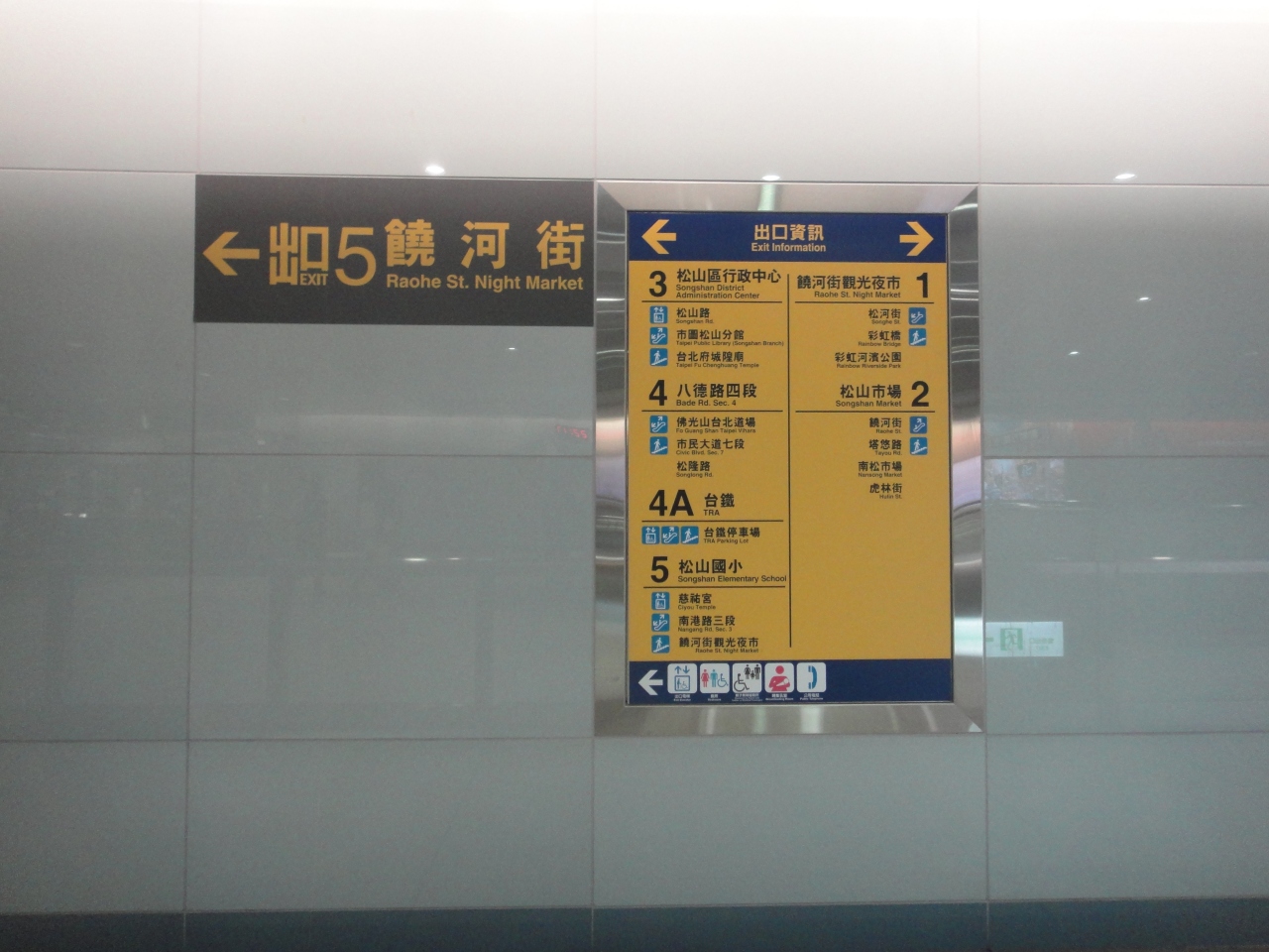 出来た時は1番出口が饒河街観光夜市と書いてあったのですが、最近は5番と書いてある場所もあります。