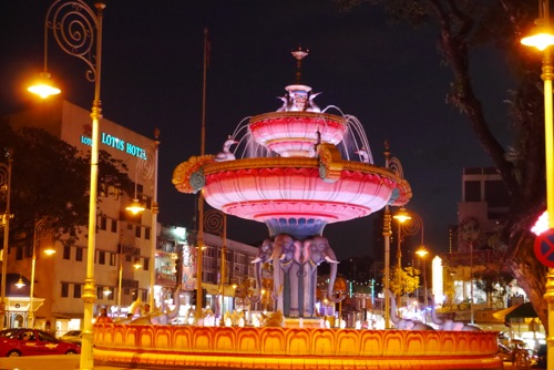 この近くに滞在していたので、滞在中何度も訪れ、散策しました。インド系のマレー人(おそらく)が営んでいる飲食店が多数存在し、カレーなどが好きなら値段もお手ごろで、おいしいし、最高に楽しめます。個人的に気に入ったのが噴水です。象がいっぱいで、いかにもインド感があり、よいです。