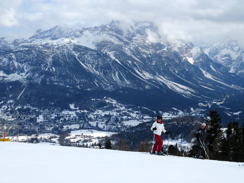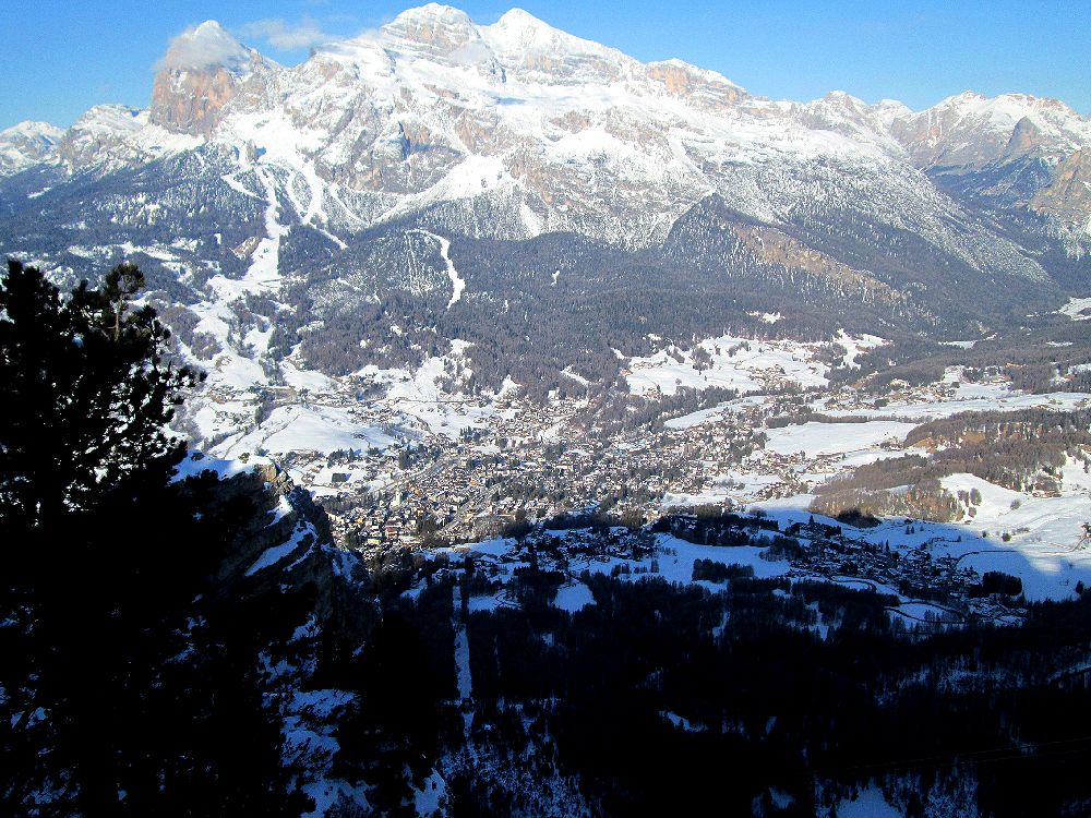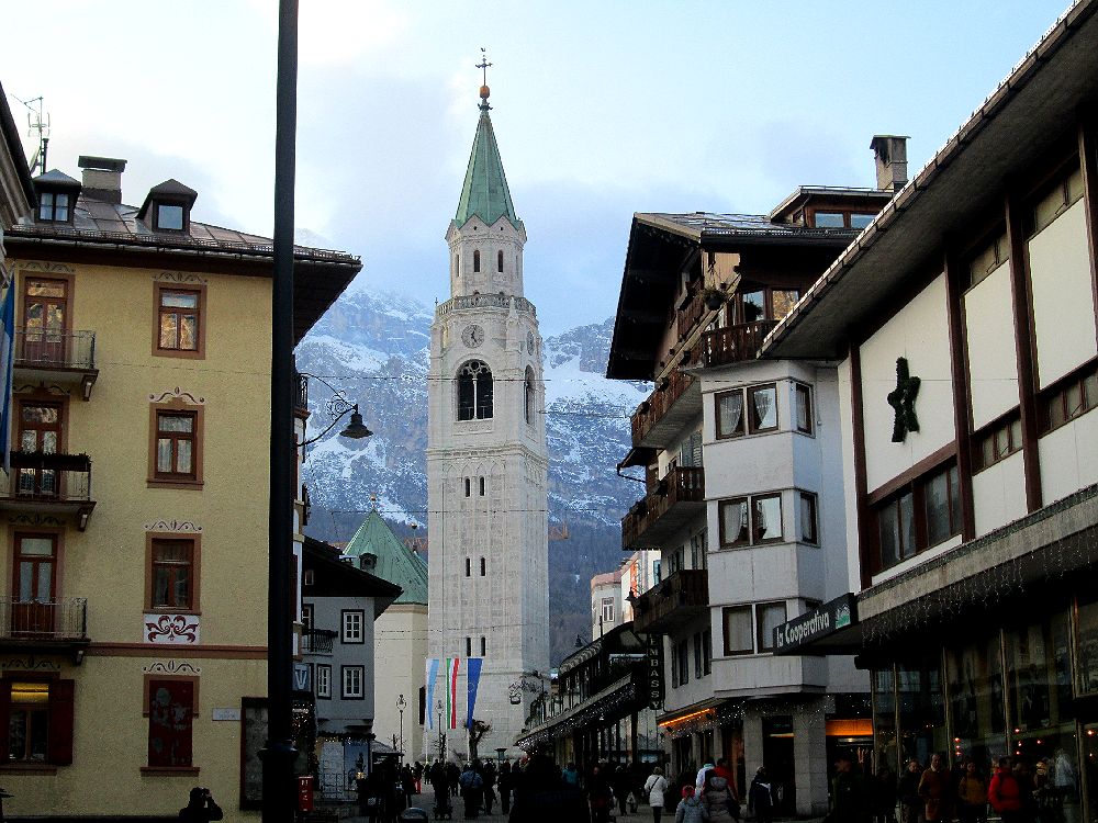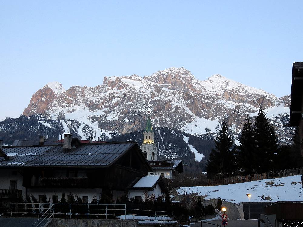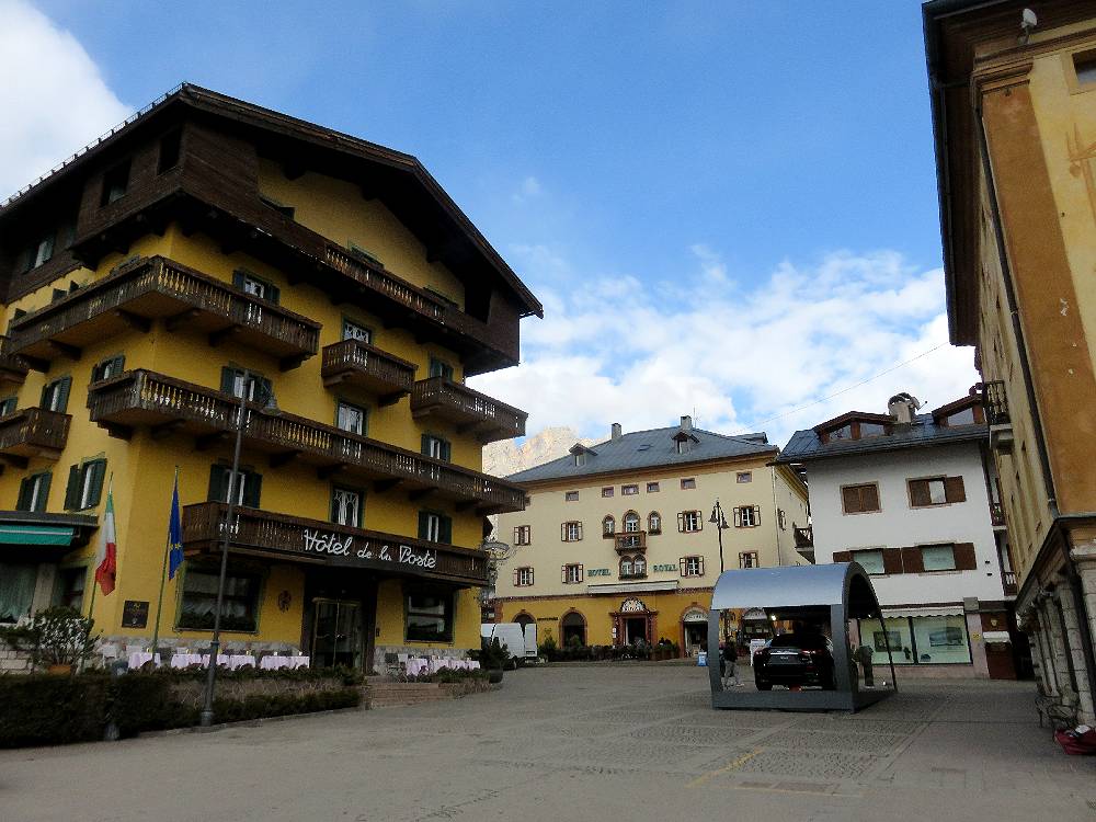 四方をドロミテ山群の岩峰に囲まれた標高1210mにある渓谷にできた小さな町で、町の中心部はブランド店やレストランやホテルが立ち並ぶイタリアでも屈指の高級山岳リゾートだ。夏は登山、ハイキング、冬はスキーの基地として世界中から多くの人々が訪れる。私達もドロミテ観光にこれまで5回訪れている。冬は2016年2月が初めてだった。日本から訪れるには、南のベニスからと、北のインスブルックからの2つのルートがあるが、結局、ベニスからはコルチナエクスプレスのバス一本で入れるので、ベニス経由で入ることに決めたのだった。ただし、バスの本数は1日2本のみで、有名な割には、公共交通機関では意外とアクセスが不便なところだった。夏、冬ともシーズン中は、ホテルが非常に混みあうので、事前に予約をとってから訪れることをお勧めする。