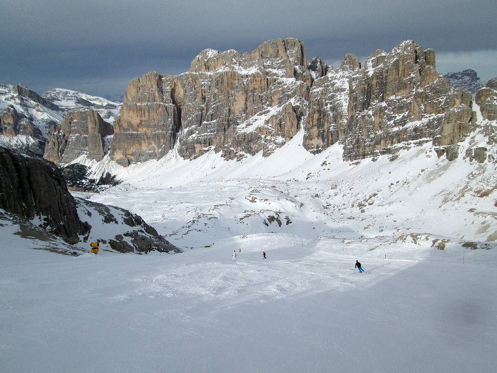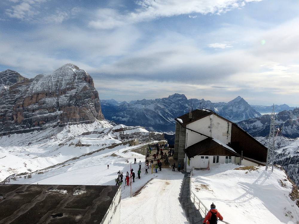 ファルツァレーゴ峠からロープウェイで簡単に約2800mの山頂近くまで上がれます。展望テラスからのドロミテ山群のパノラマは素晴らしいの一言です。第一次世界大戦中にイタリアとオーストラリアの山岳軍が激しく戦ったところでも、知られており、野外戦争博物館として見学できるそうです。春から秋にかけてはトレッキング、冬は山頂からアルメンタローラ方面へのスキー滑走などで多くの観光客がやってきています。私達も2016年の2月に初めてスキー滑走のため上りましたが、息を飲むような景色の中すべることができて最高でした。
