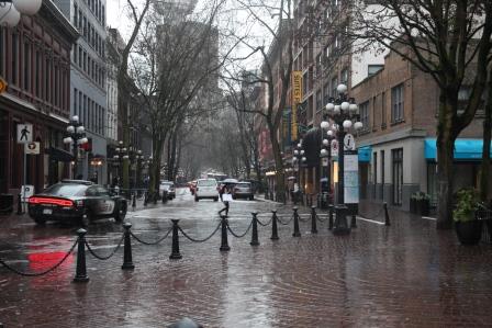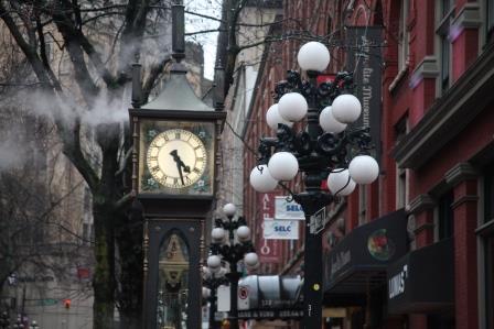 バンクーバー旧市街の中心部で、バンクーバー発祥に地とされています。入口にはギャッシー・ジャックの像があり、少し行くと有名な蒸気時計があります。蒸気時計は15分おきに蒸気を噴き上げて汽笛で時を告げます。毎時0分のものが一番長い。