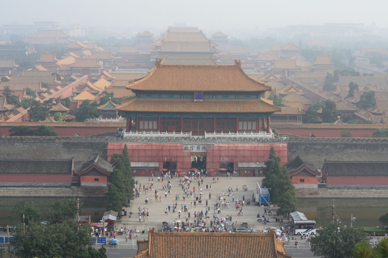 神武門を抜けると正面にある小高い丘が影山公園。故宮を望む絶景ポイントだ。丘の上へは10分ほどで上ることができ、大してきつくない。展望台から望む故宮は圧巻で、北京で最も見たかった光景が広がっている。日中は逆光ということで夕方に行ったが、モヤがかかってそれほど鮮明には見えなかったのがやや残念。入場料は10元に値上げされていました。