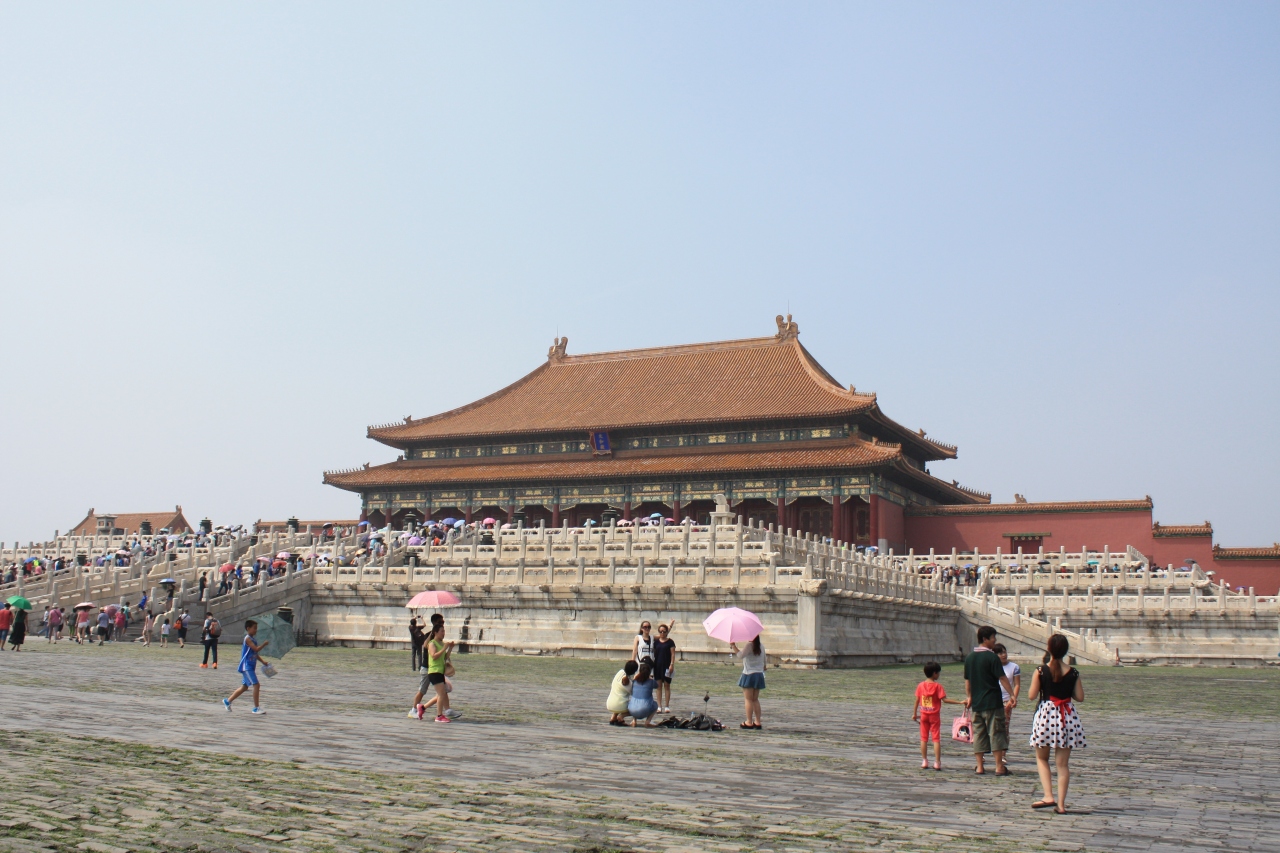 故宮の中でも最も巨大で最も重要なメインとなる宮殿が太和殿。とにかく広大な太和殿の前に広がる広場にずらりと並んだ官吏たちの姿は、さぞ壮観だったに違いない。中国文明の偉大さと皇帝の絶対権力を感じられる場所としてはここが一番かも。ある種のパワースッポットのような感じだ。