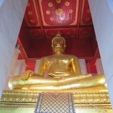 靴を脱いで中に入ると金色の大きな仏像が座っています。
