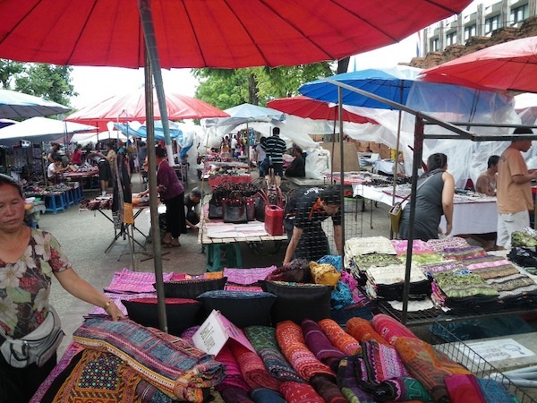 チェンマイ旧市街の東側の門、ターペー門からラーチャダムヌーン通りにかけて、毎週日曜日の午後に開催されるマーケットで、ところ狭しと露店が並びます。ぶらぶら見るだけでも興味深いですし、値切りながら買物をするのも面白かったです。