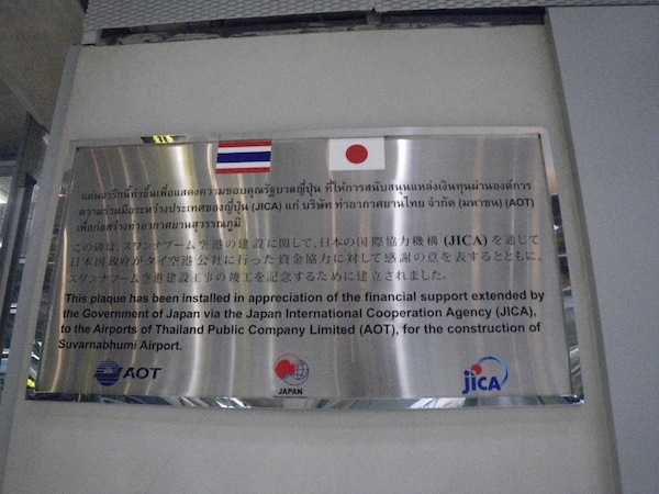 この空港は、日本の国際協力機構 JICA を通じて日本国政府がタイ空港公社に資金協力をして建設されたそうです。その感謝の碑が空港内にありました。