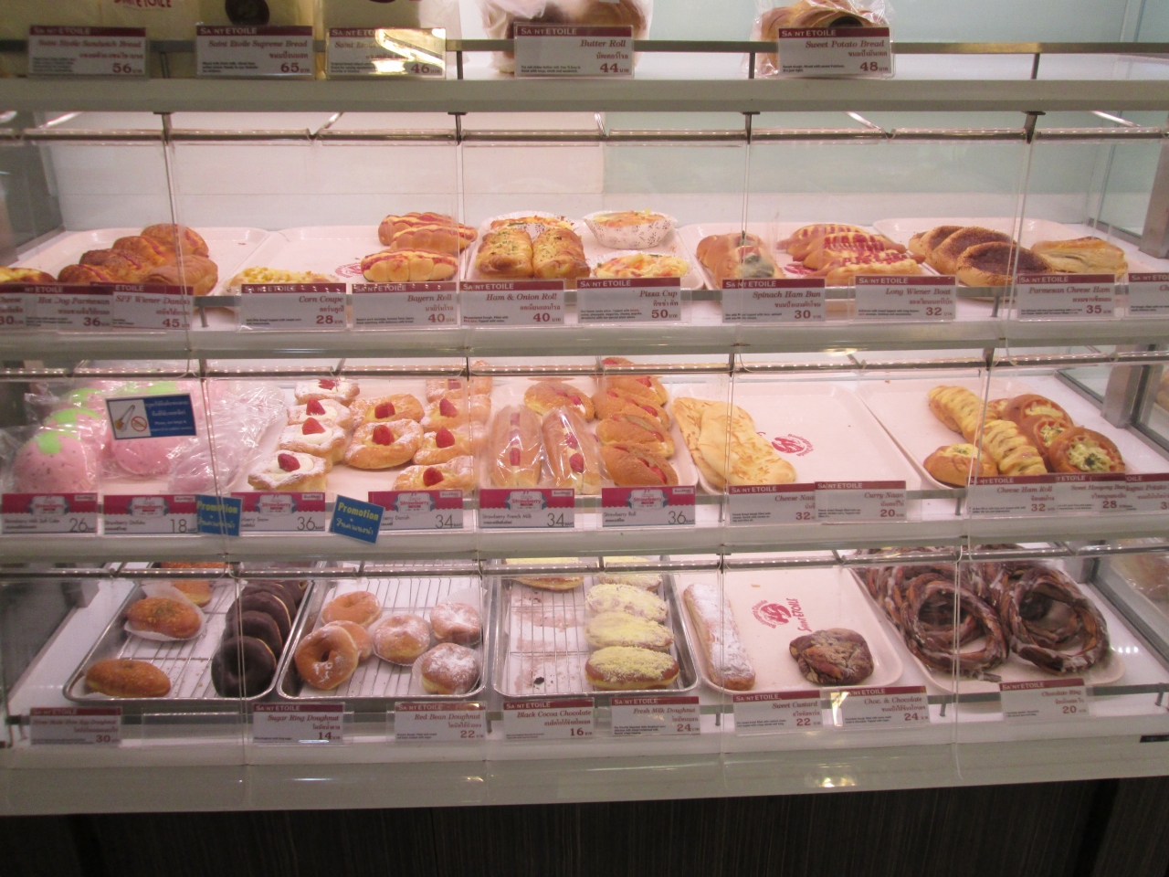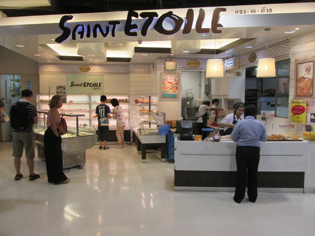 ターミナル21の地下1階にサンエトワールが入っていました。惣菜パンや菓子パンなどいろいろと商品を扱っています。ホテルで朝食が付いていないときは、朝食として買いますがどれもおいしいです。日本の専門店パンより若干安いです。