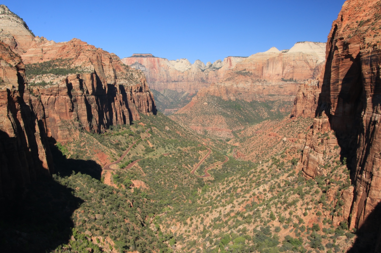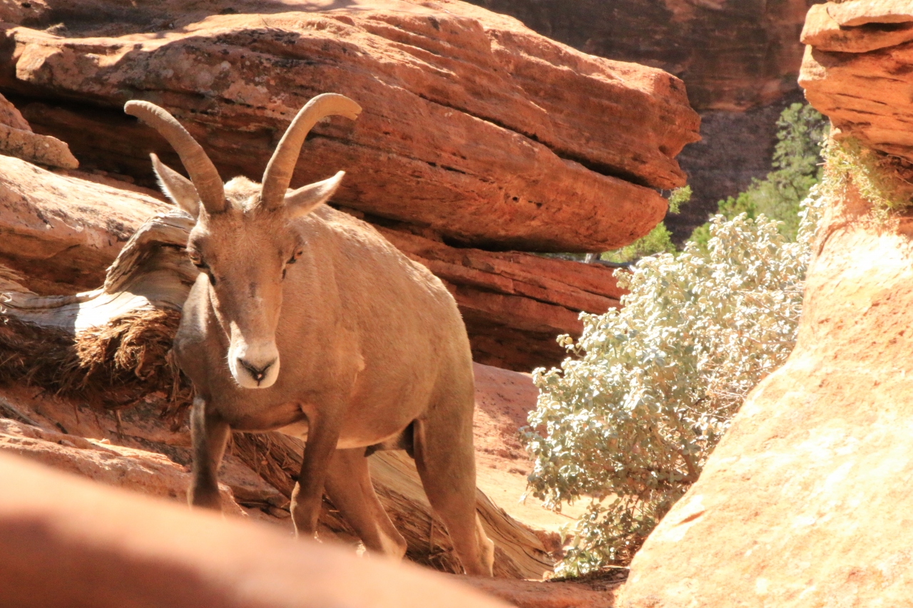 ザイオン・マウントカーメルハイウェイ沿いにある岩の上の展望ポイントで片道30分ほどのトレイルがあります。トレイルはそれほどアップダウンはありませんが、かなり狭い場所や炎天下の中、岩の上を歩くので夏場はそれなりの覚悟が必要です。ただ30分登った先には素晴らしい絶景が待っていました。眼下にザイオンキャニオン、そしてそれを囲む山々が180度見渡せます。また、私達は展望ポイント近くでビッグホーンシープにも遭遇しました。この辺りに生息しているのでよく見られるそうですが、間近で見られたので感動しました。