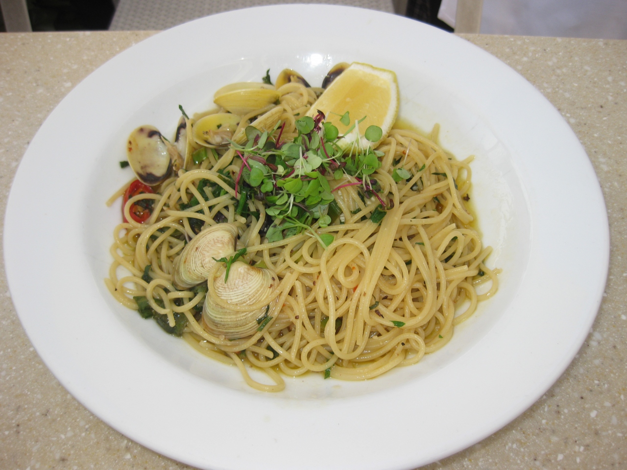 前菜は夫がサーモン、私がカラマリ天ぷら、メインは、ボンゴレとサーロインにしました。サーロインが思ったよりも大きく、下に敷かれたマッシュポテトも美味しかったです。