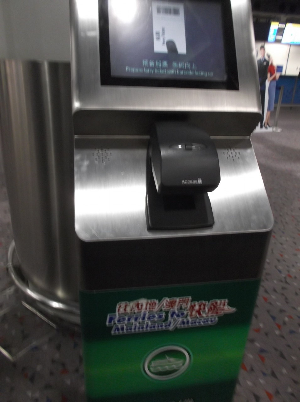 そこに、マカオ行きのフェリーのカウンターがあるので、手続きをする時に、日本で預けた荷物のタグを提示します。 これで、荷物をフェリーに乗せてもらえます。