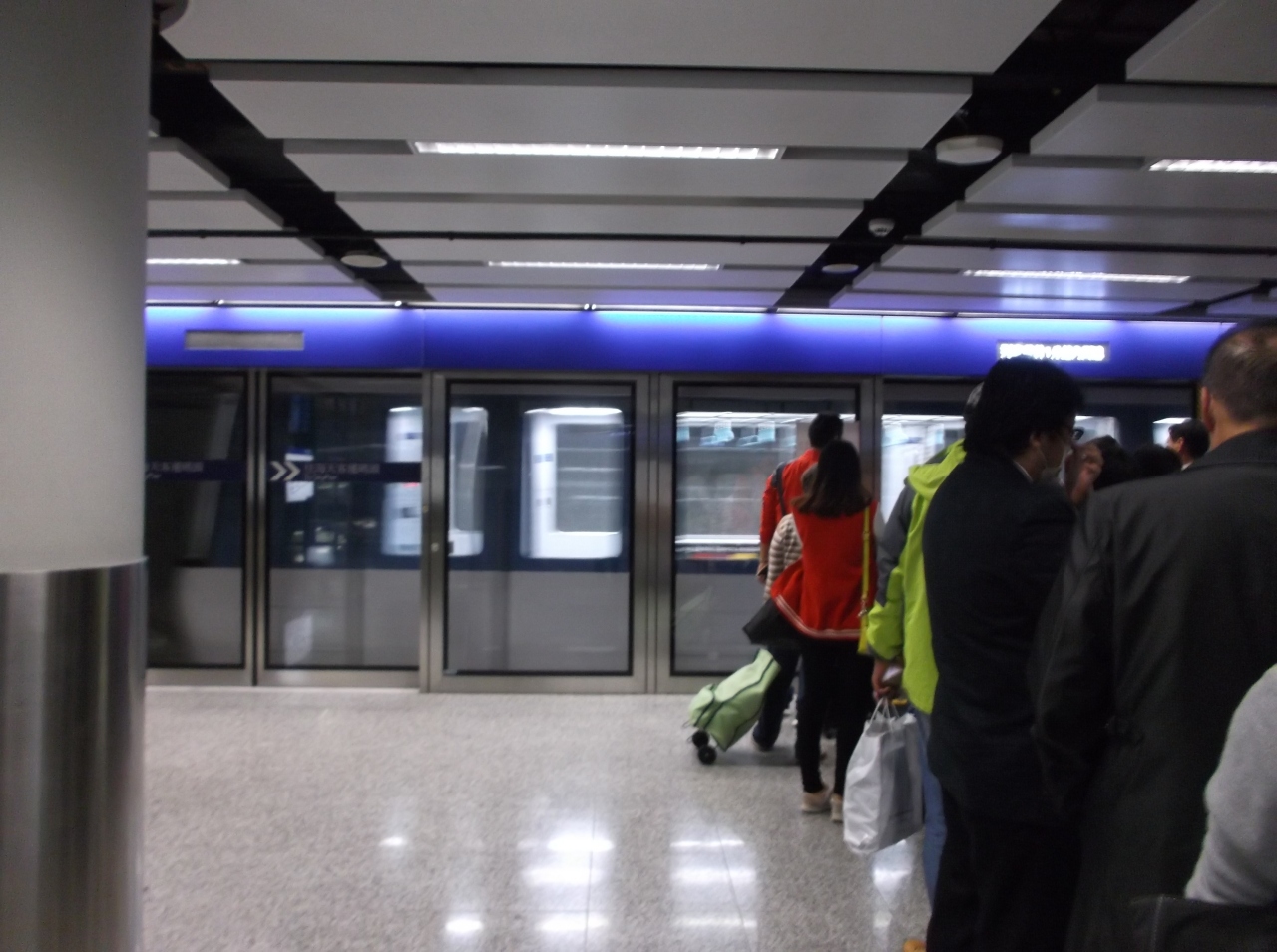 エスカレーターで降り、連絡電車に乗り、スカイピアフェリーターミナルに移動します。