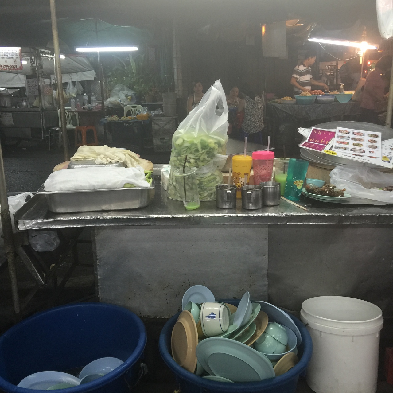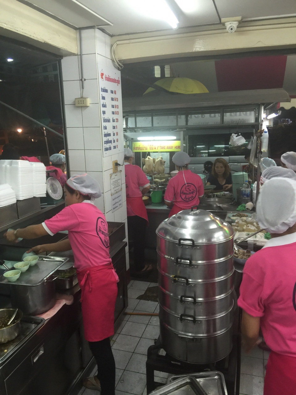 タイらしい店内なのか店外なのかわかんないとこにまでテーブルがあって、調理場も丸見え(笑)