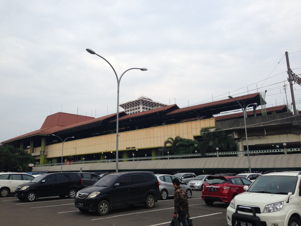 ジャカルタの玄関口のスカルノ・ハッタ空港とジャカルタ中心部を結ぶダリムバスが出ている駅で、さらにジョグジャカルタ行きなどの中長距離列車が発車する駅でもあります。駅前はとても広いムルデカ広場で、中央部分には高いモナスという独立記念塔がそびえ立っています。