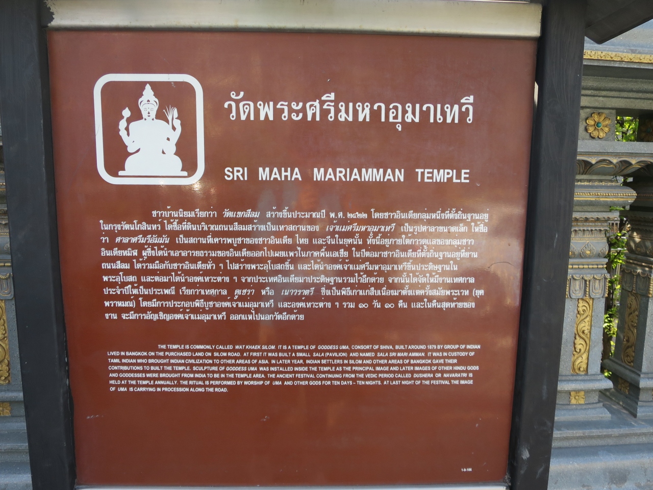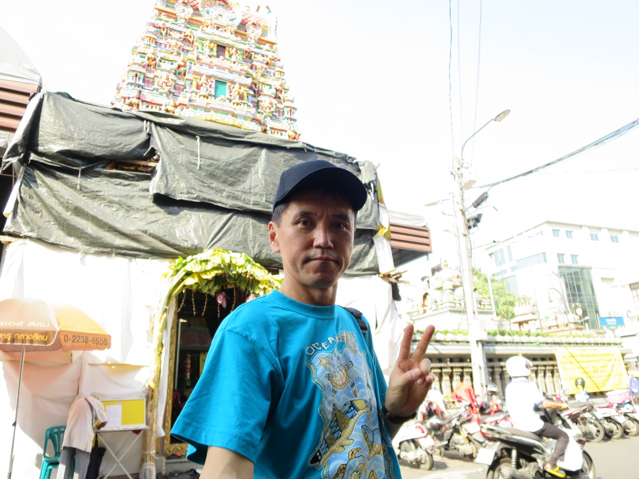 シーロム通りにある寺院、参拝客が多くとても賑やかでした。こちらの寺院、見た目が不通のタイの寺院と違います。ヒンズー教の寺院でした。中に入るとちょっと違うなと思いました。