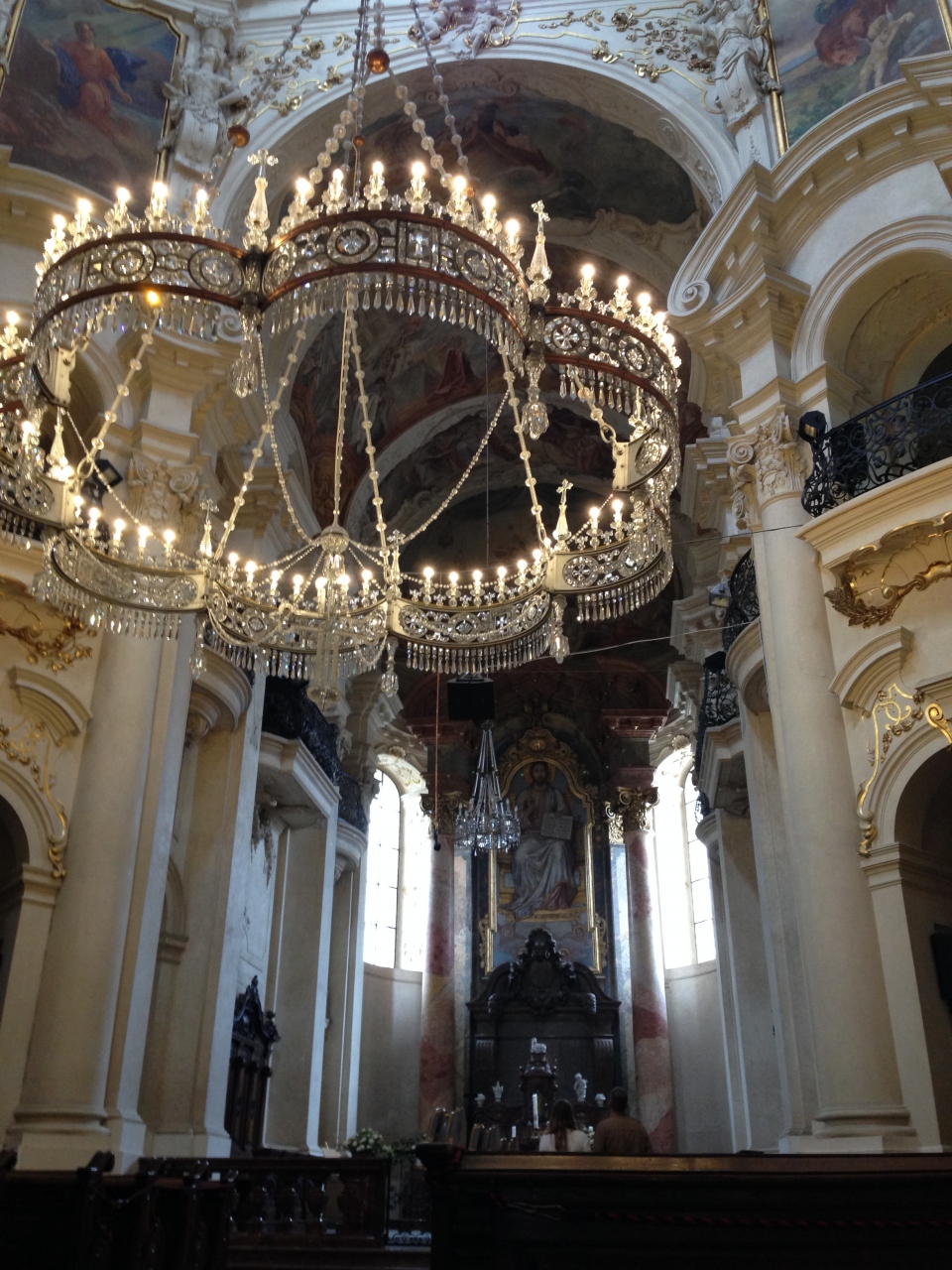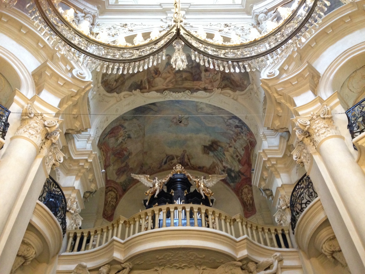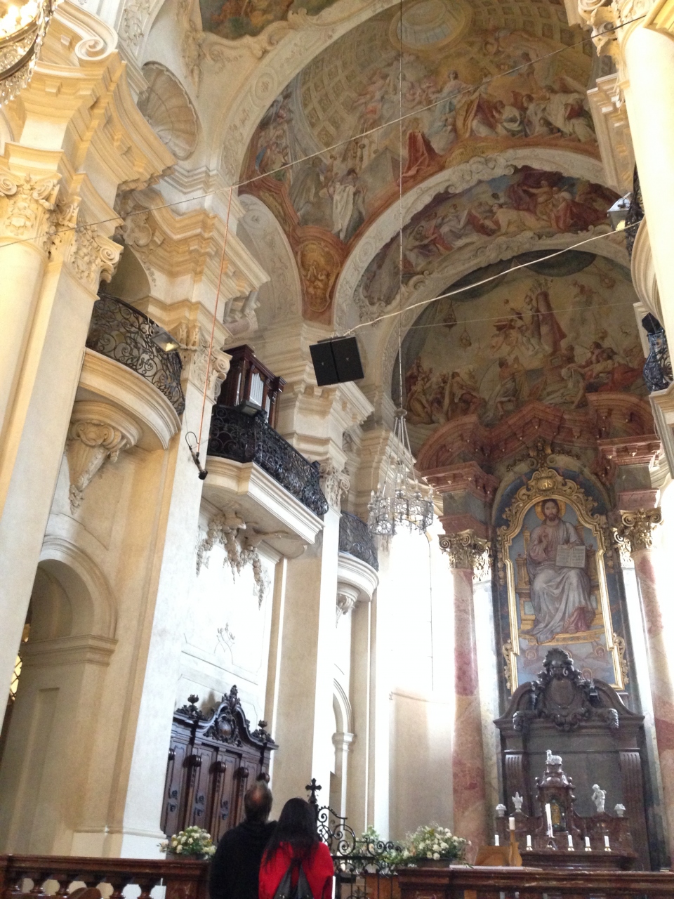 広場で仕掛け時計の時間を待ちつつ、寒さを凌ぎつつ、お邪魔しました。外観は工事中でネットが張られており、最初は目もくれずあまり気にしてなかったのですが入ってみたらこちらのミクラーシュも規模は小さいもののかわいく綺麗な教会でした。場所も良く小さいのにそんなに混雑していないのも良いです。
