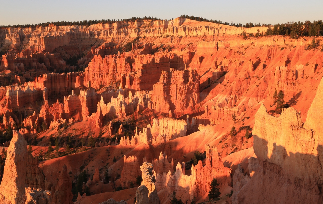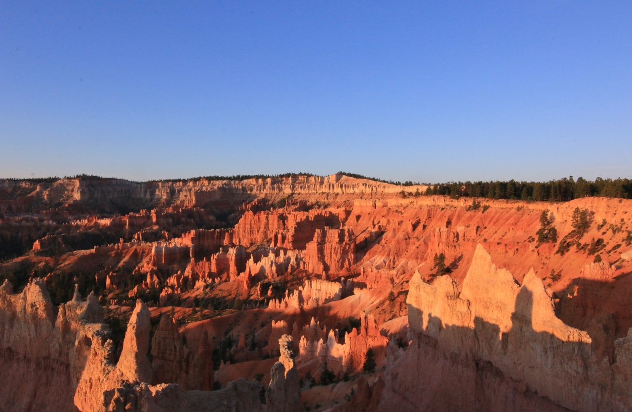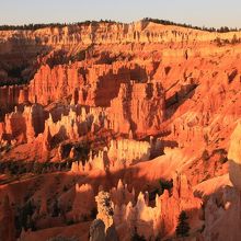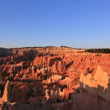 ブライスキャニオンは昼、夕景、星空、朝日と様々な風景が楽しめる場所なので1泊し朝焼けを見に行きました。展望スポットはいくつかありあますが、サンライズポイントは名前の通り朝日鑑賞に適した場所。日の出前からスタンバイしていると朝日が昇ってきて、無数のフードゥーが暗闇の中から次第に赤く照らされ始める姿は息を飲む美しさでした。