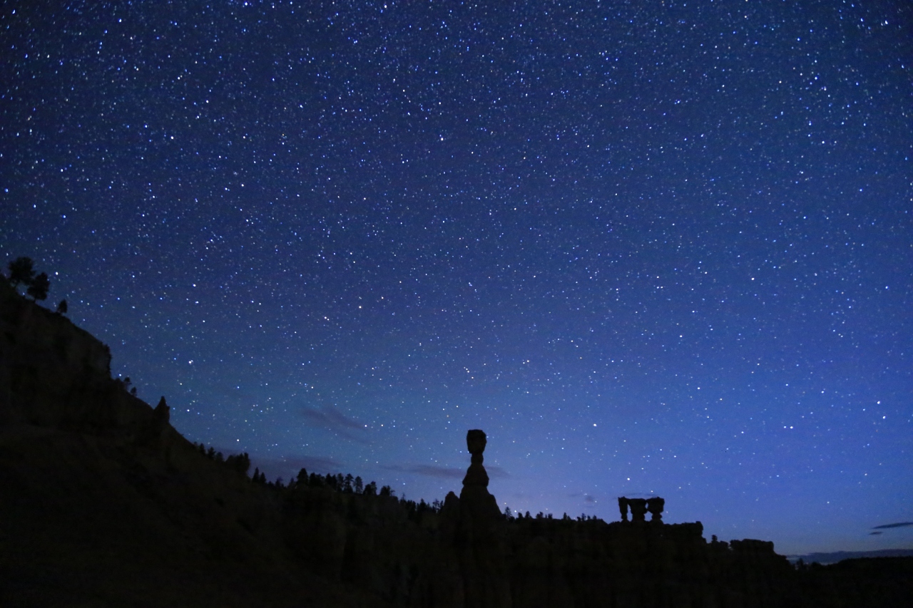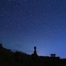 ラスベガスからのグランドサークルツアーで1泊しました。地層としてはグランドキャニオンに比べかなり新しいものですが、自然の創り出した造形美がツアーの中で最も印象に残った場所です。昼はフードゥーと呼ばれる尖塔郡の中をトレッキングし、夕景と朝焼けを鑑賞、そして運よく流星群が来ていたので星空観賞もしましたが、天の川がとても近く感じられました。また満天の星空に浮かびあがったフードゥーは本当に幻想的。是非泊って時間とともに表情を変えるキャニオンを見てほしいと思います。