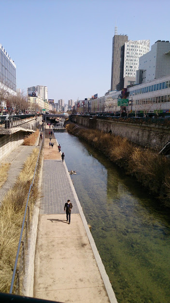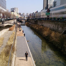 ソウルの中心部を流れる川で、ど中心の光化門から6km近く遊歩道など護岸が整備されており、散策するには非常に気持ちが良いです。街歩きという観点で行くと道路を歩くのも良いかもしれませんが、観光スポットが多いこのエリアにおいては、スポット間の移動の際にここを通っていくと、趣も違って気持ちよく街歩きができると思います。自分は東大門市場周辺の清渓川を散策しました。光化門周辺と違って、人もまばらで賑やかではないですが、ゆっくりとお散歩するにはちょうど良い雰囲気です。