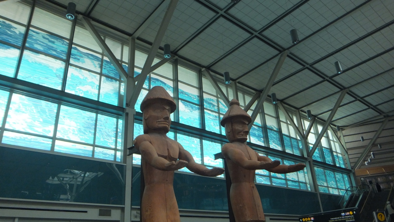 初カナダの到着地に選んだのがバンクーバーでした。2階建てで到着フロアから両サイドガラス張りの通路を通って入国審査になります。明るい空港ですね。