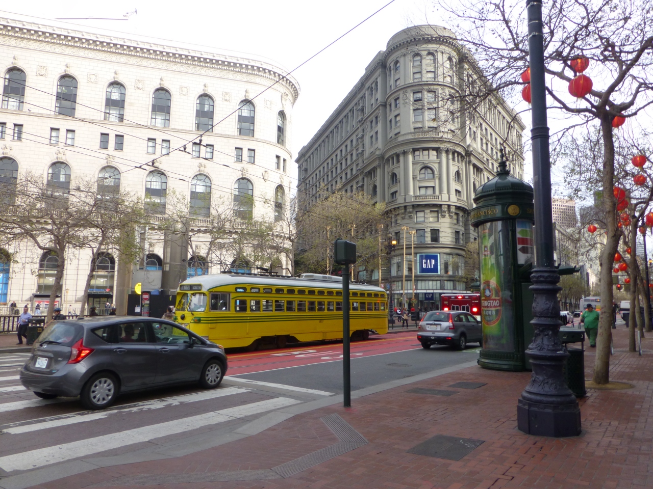 SFOの3階から乗りました。ガイドブックで券売機での切符の買い方を読んでいましたが、イマイチわからず、近くにいた係りの人に行き先を伝えて操作してもらいました。最初に機械に貼ってある料金表で、目的地までの運賃を確認。お金を入れて、チケットの枚数を選択、一度に2人とかも買えます。その後左側のボタンを押して、自分の目的地までの運賃の金額に調節します。このようなシステムだと知らなかったので、最初は自分で買うのは無理だと思いました。英語が苦手なので尚更です。電車自体は座席もゆったりしていて良いです。空港からだと景色も楽しめます。空港からユニオンスクエアまで30分ほどで、時間も正確なので便利でした。