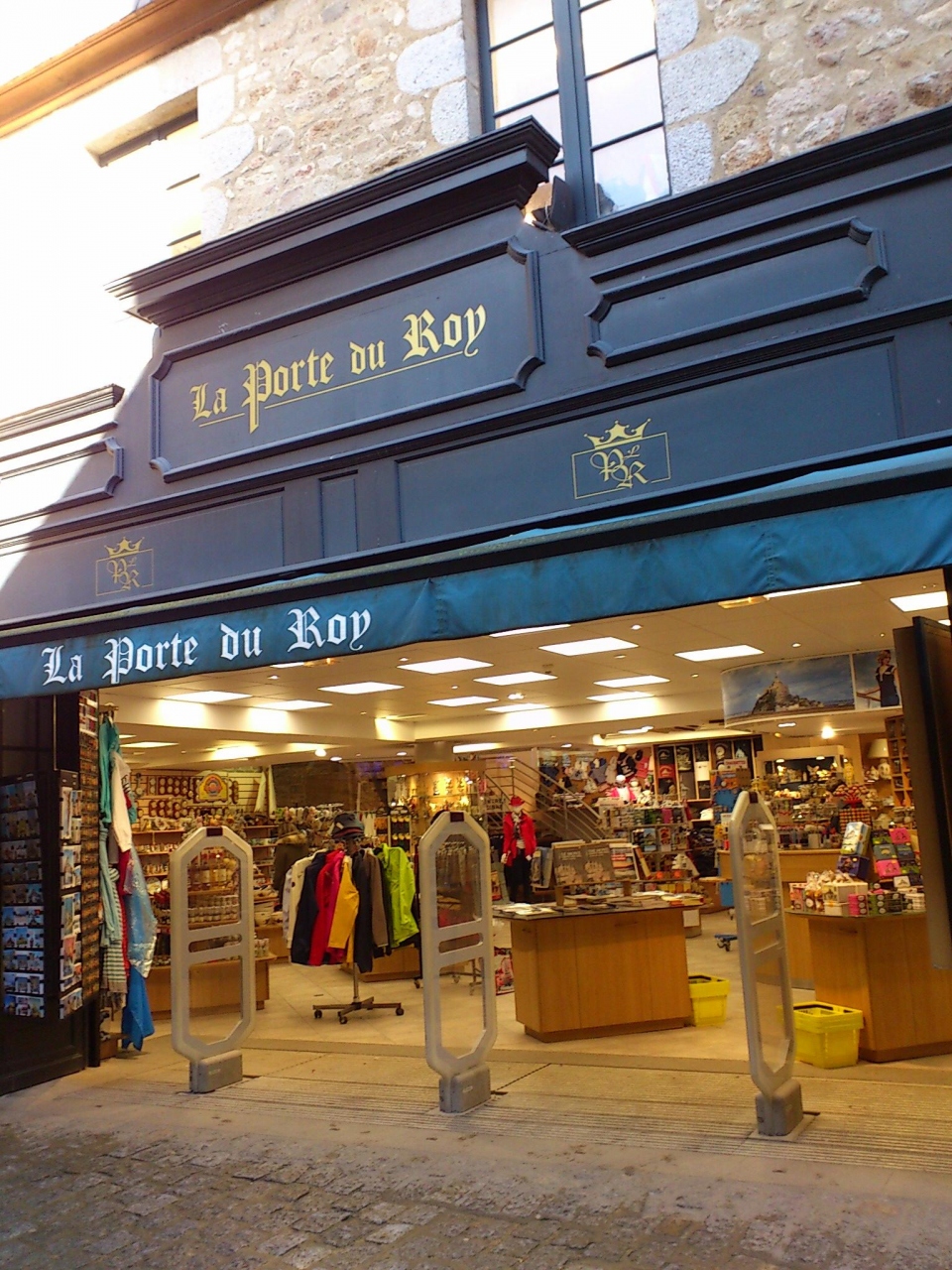 La Porte du Royとは、フランス語で王の門という意味です。フランスの世界遺産のモンサンミッシェルの王の門の近くにある、同じ名前のお土産物屋さんです。王の門をくぐってすぐの左手にあります。1階は普通のお土産物、2階には服が売っています。
