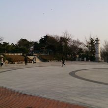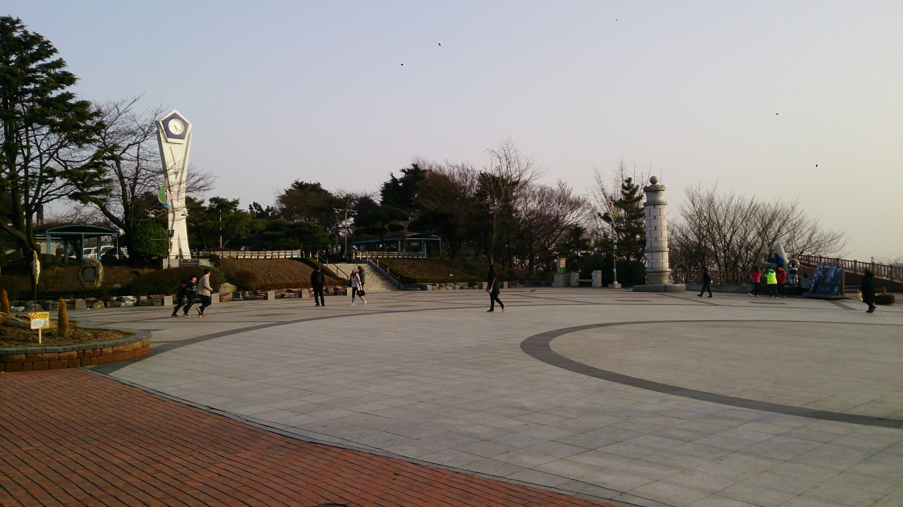 仁川駅から駅前のチャイナタウンを抜けて、小高い丘の頂上方面に坂を上がっていくと頂上周辺にある自由公園の一番高い場所にこの広場があります。駅から徒歩で15分ぐらいの場所になりますが、道のりの大半は坂が続きますので、坂が苦手な方はきついと思います。頂上付近の展望スペースは想像以上に広くて、イベントなどにも使われています。自分が訪問したは3月の上旬の週末でしたがステージが設置されていました。ここから見渡せる見える風景は南側を中心に見渡せる感じでかなり広範囲で見渡せます。