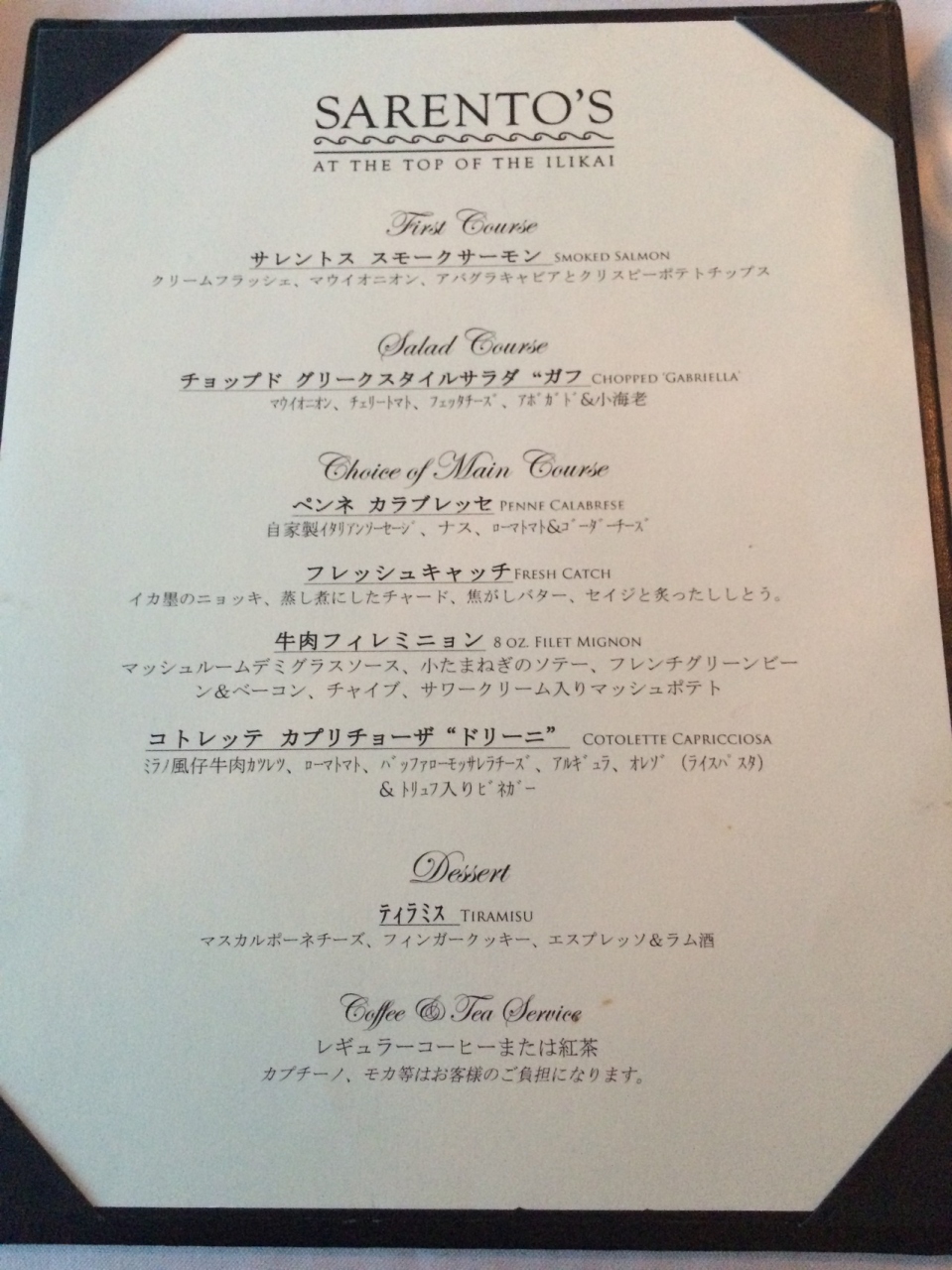 金曜日のヒルトンの花火を見ながら食事を楽しみたくて予約しました。こちらに食事に行かれた方のブログや口コミを見て、ドレスコードはカジュアルだったりセミフォーマルだったり色々でしたが、ドレスコードがあまりにカジュアルだと海外ではよくない席に案内されることもあるのでレースのワンピースにパンプス、家族もセミフォーマルぐらいの服装にしました。更に花火が見たいから、と伝えたにもかかわらず、最初から日本語メニューがセットされていた席は花火からは一番遠く、更には柱の陰になっている席でした。花火が始まれば観に行くのに移動して構わないと言われましたが、予約もしていない欧米人やカジュアルな服装の欧米人の方が花火よりの席でガッカリ…人種差別なのか、今までのレストランの経験から日本人はマナーが悪いと判断されているのか…とにかくガッカリ。食事はまぁ美味しかったけど、メインが出てくるまでに30分ほど間も空いたし、これだったら同じ金額をかけてももっと美味しいところもあったし、その後外で見た方がよかったです。高いお金をかけて食事するほどではないかな。もう行きません。