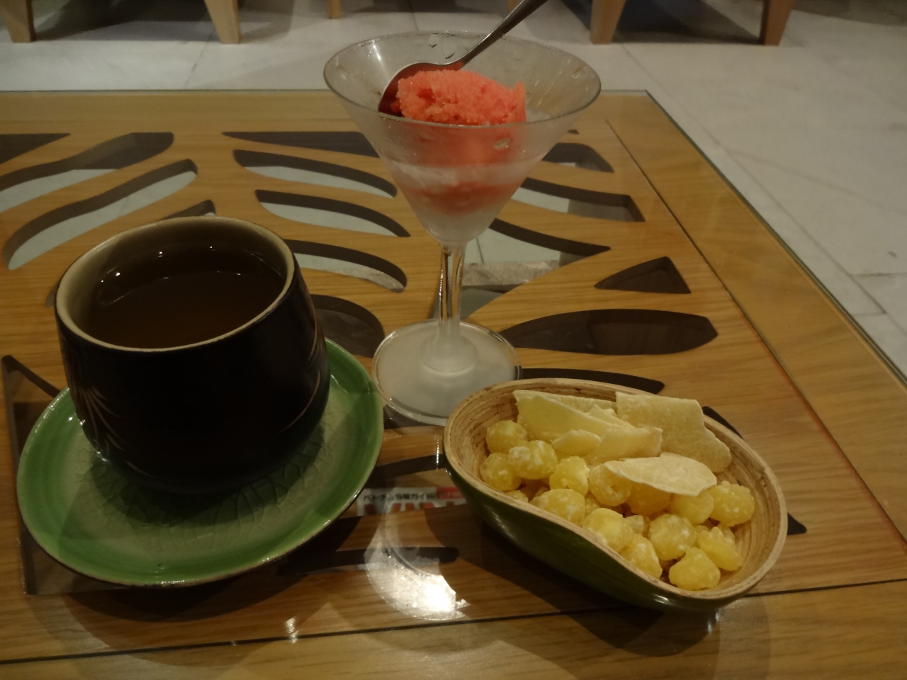 まず、酵素ドリンクをいただき、、、最後にはお茶請けも♪