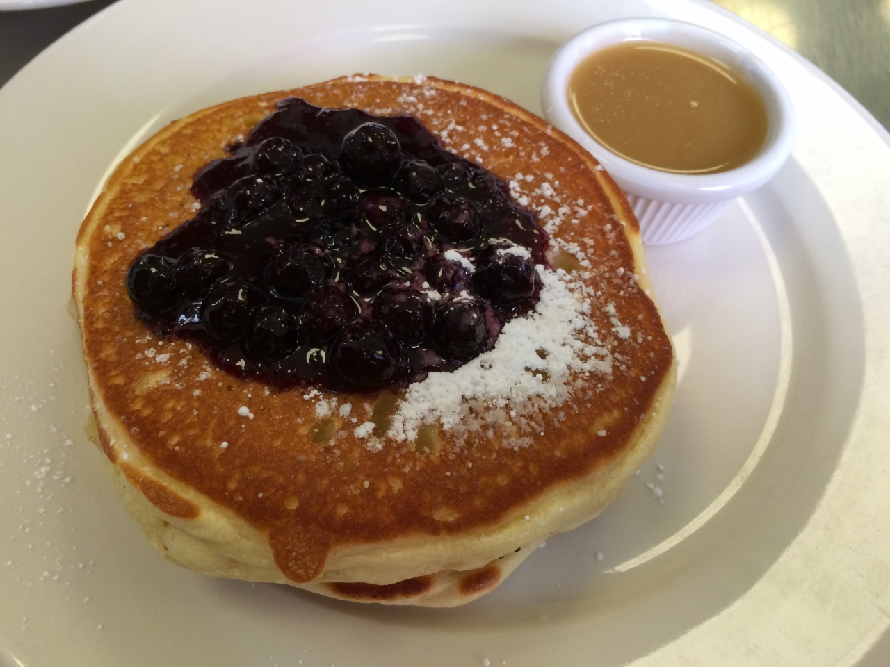 パンケーキは3段重ねで、ブルーベリーがたっぷり入ってました。