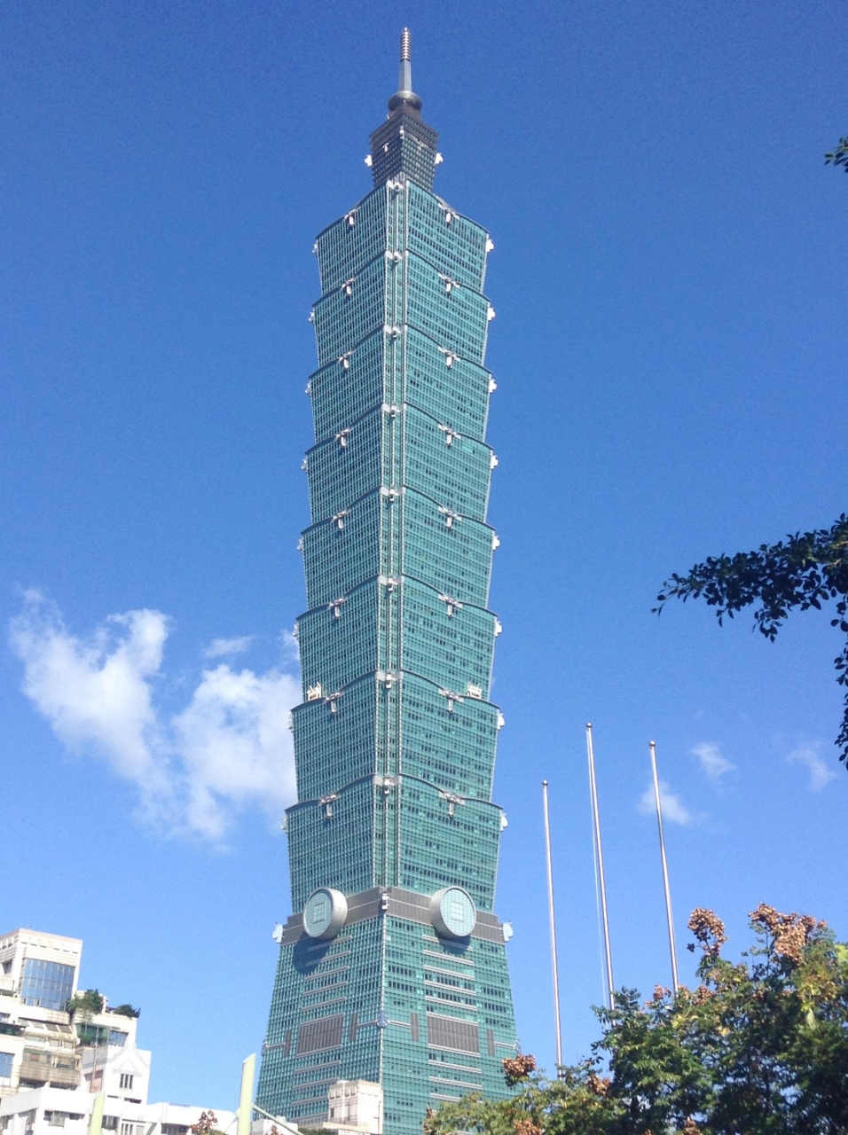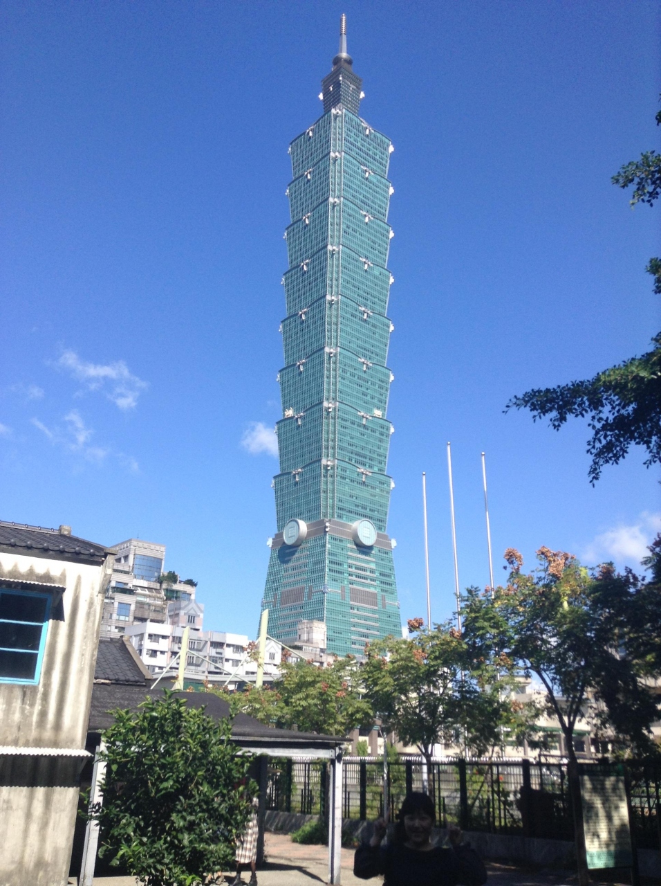 明月湯包でランチをしたあと歩いて台北101へ向かい、途中の好、丘に寄りました。ここから台北101の写真を撮るとキレイに全体を撮ることができると聞いていたのですが、本当にちょうどいい大きさで全体をキレイにまっすぐの状態で写真が撮れました!台北101の近くまで行ってしまうと、建物が高すぎて見上げるような写真しか撮れないし、離れすぎても台北101が小さく映る写真になってしまうので、ここは台北101撮影スポットとしておすすめの場所です!またこの好、丘にはショップなどの他に、昔の民家が並ぶエリアの四四南村があります。私が行ったときは、ちょうどこのエリアでフリーマーケットのようなイベントが開かれていて四四南村では写真が撮れなかったのが残念。ここはカラフルなドアや窓の民家がレトロかわいい雰囲気です。レトロな街並みのすぐ後ろに台北101が見えて古さと新しさを一緒に感じられる場所でした。