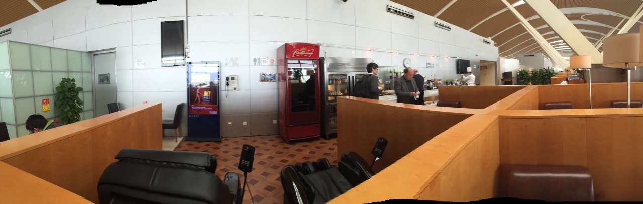 Diners club cardで入りました(priority cardも持ってますがdiners card見せれば入れます)。入ってすぐに左ビジネス右ファーストと書かれていて別れます。このラウンジはカタール航空やガルーダのラウンジにもなってるで、それでこんな表示があるのかなと思いました。Dinersで入ると、特にどちらも指示されなかったので もちろんファーストに向かいました。そちらしか見てませんが、他の人も書いてるように、スパークリングワインも赤も白もウイスキーもあり、ビールやお茶も黒烏龍みたいのがあり、またたまたまかもしれませんが、上海麺をその場で茹でて供してくれ、なかなか良かったです。ちなみに隣の68番はキャセイのラウンジでした。今回はStar allianceの旅行なのでone worldのラウンジには入ることができなかったので、次回One worldできた時は、キャセイのラウンジにも入ってみたいです。69番ラウンジを後にしてStar allianceのAir chinaのビジネスラウンジに行きましたが、広いだけで美味しそうなものがなく点心もなく麺もなく(ファーストにはあるのかもしれないが)、アルコールも質量ともにつまらなく、何も口に入れられませんでした。Star allianceなら69番ラウンジの方が良いかもしれないです。