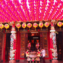 たくさんの赤い提灯が、とても台湾らしさを感じさせるステキなお寺です。