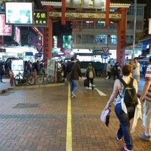 赤い大きな鳥居みたいな門をくぐり少し歩くと屋台が広がります。