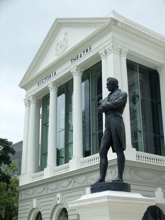 近年、ビクトリア・シアター&コンサート・ホールが補修工事中だった時には、周辺が塀で囲い回されて黒いラッフルズ卿の像も見えませんでしたが、今では工事も終了。