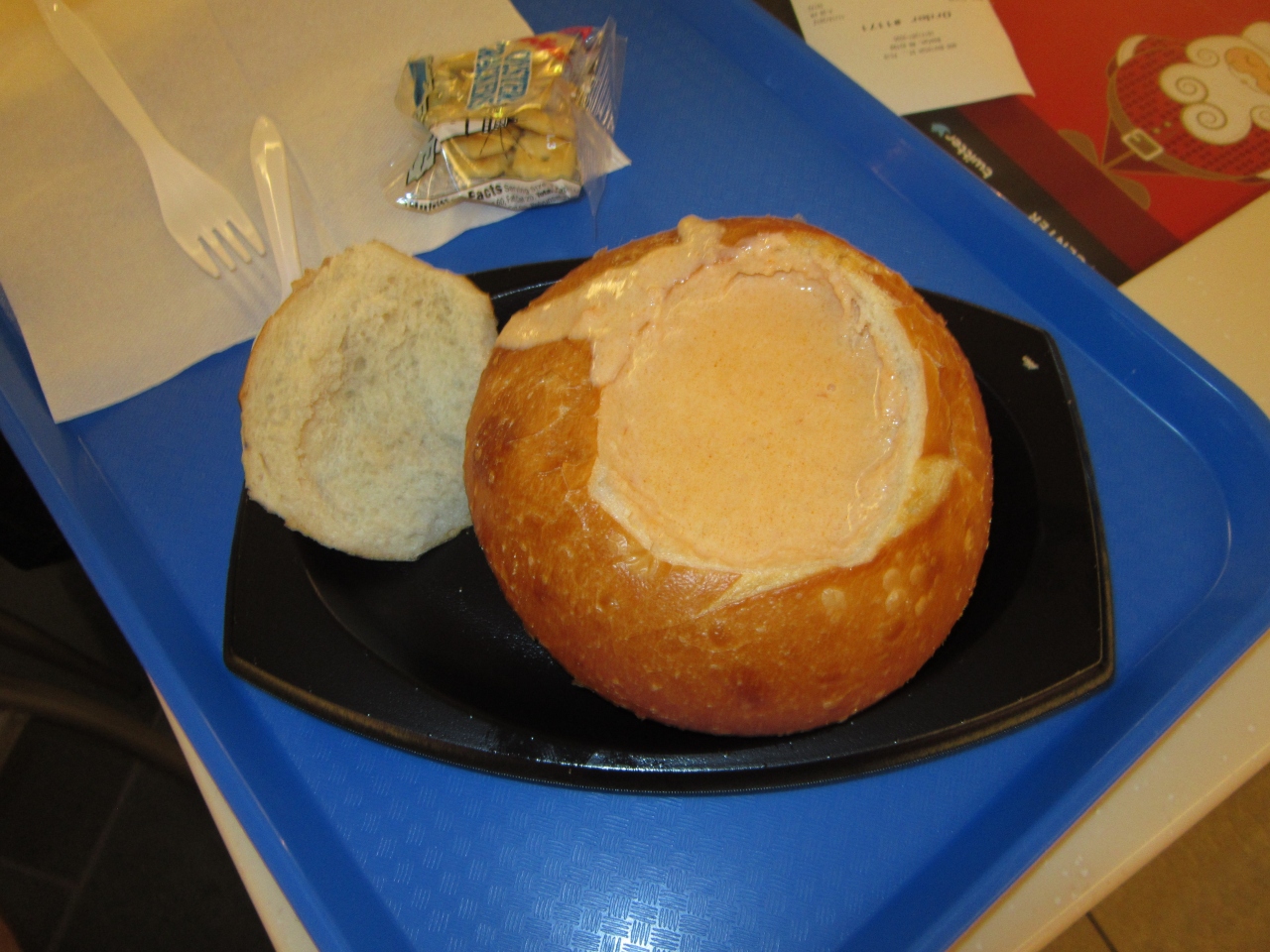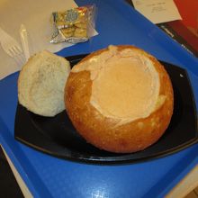 パンが器になって、中にたっぷりのクラムチャウダーが入っている一品は、10ドル超えで一瞬、高くね?と思ったものの、本物を見てみたら納得、アメリカサイズでした。