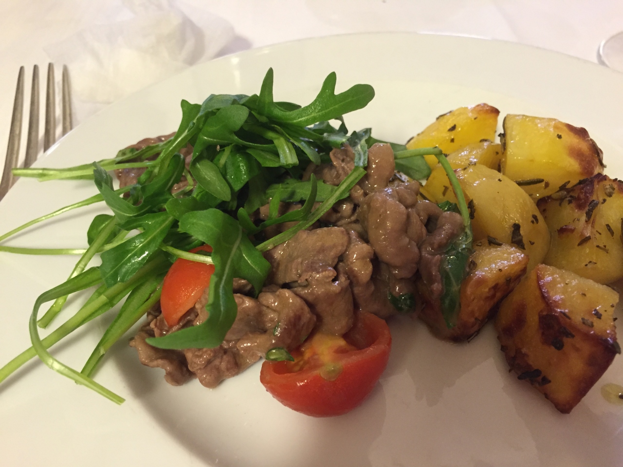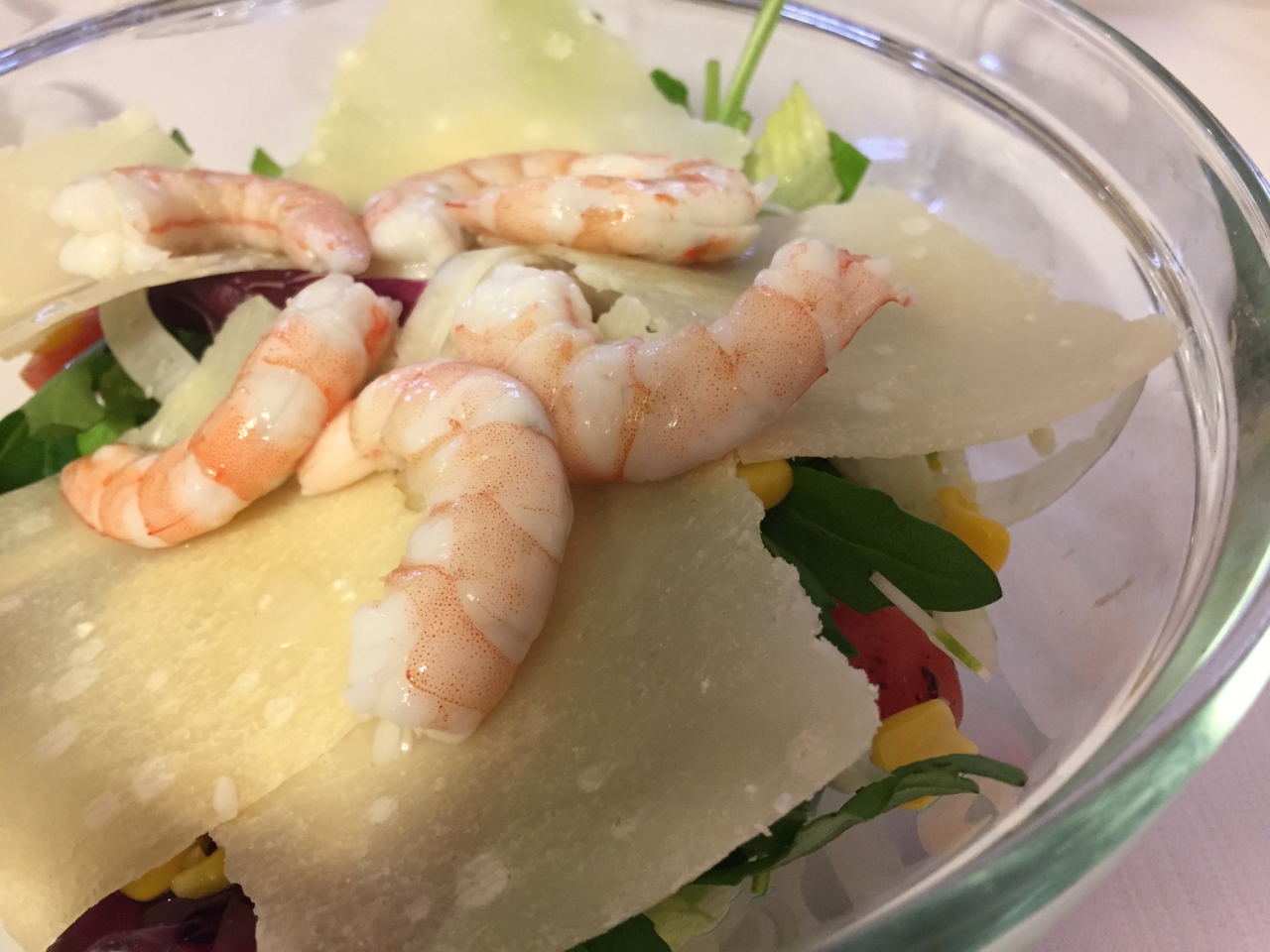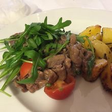 食事は日本人が好きな濃厚なパスタの味、サラダもセンス良くチーズと野菜がベストマッチ。