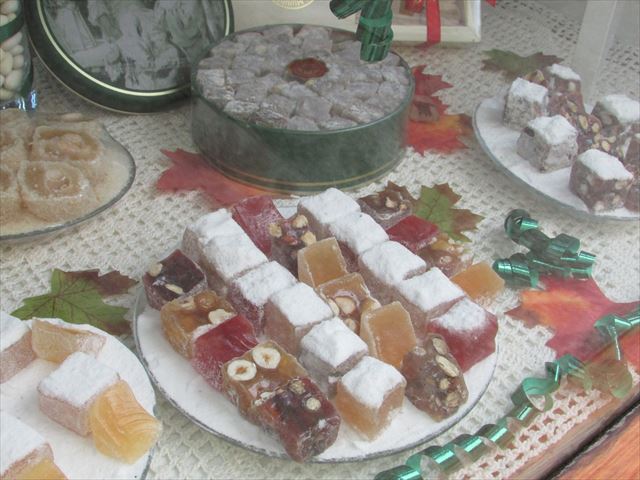 ウィンドウに並べられた色とりどりのロクムは本当にきれいです
