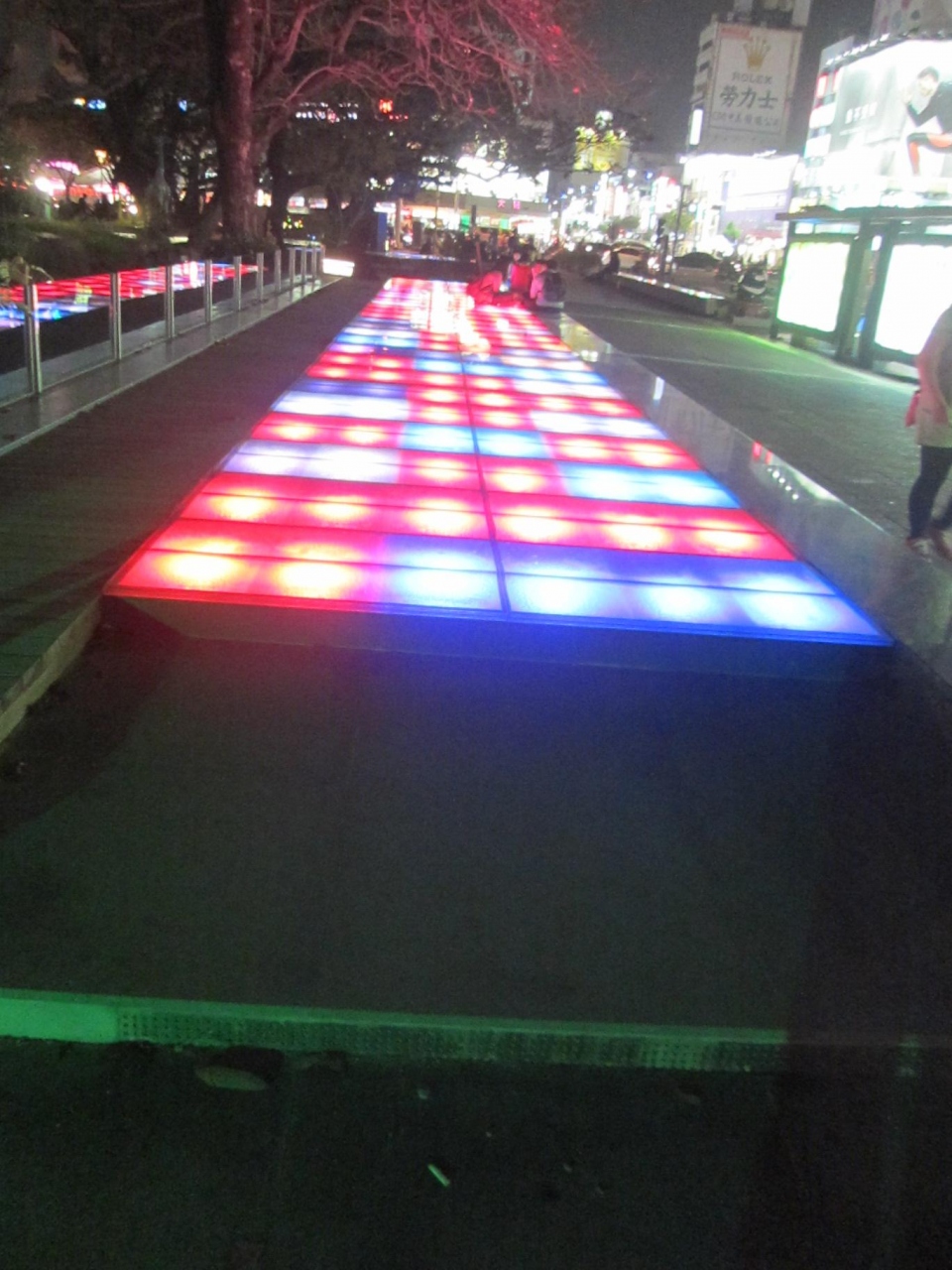 中央公園の一角にあるスポットです。全長18mという微妙な長さの光に彩られた道で、2014年にリニューアルされた際に近くにパフォーマンス広場や芸術文化歩道等が設けられました。それほど観光客も来ておらず、敢えて行くほどの観光スポットではないように思います。