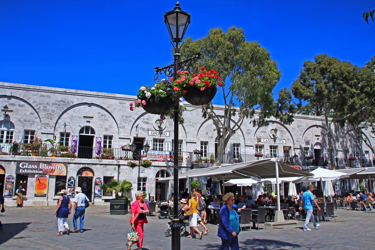 外壁は厚みがあり、レストランやお店が入っていて、その中心に広場があり、