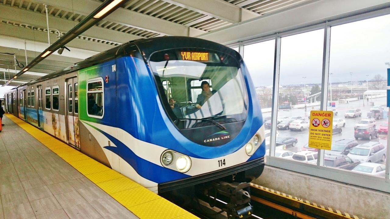空港を出た正面に空港駅があり、券売機で磁気カードを購入する。運賃はゾーンによって金額が異なる。この日をバンクーバー観光に当ており、公共交通機関に何度も乗るので、1日券を購入した。1日券の場合はゾーンの制限が無く、バンクーバー市内のバスや船も利用できるので、1日観光するのであればかなりお得だ。1日券はこの自動券売機でクレジットカードで購入もできる。