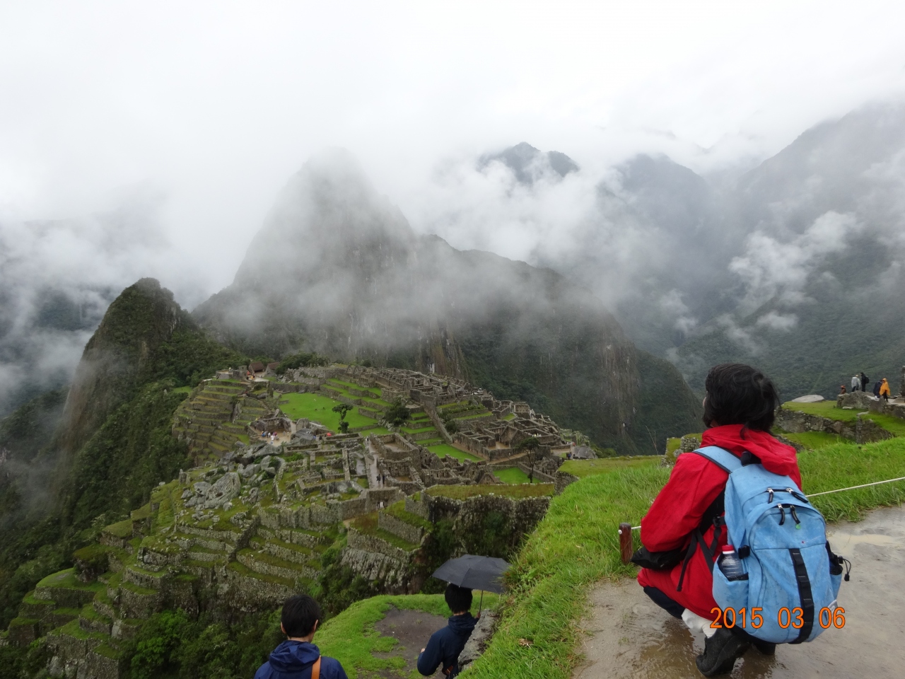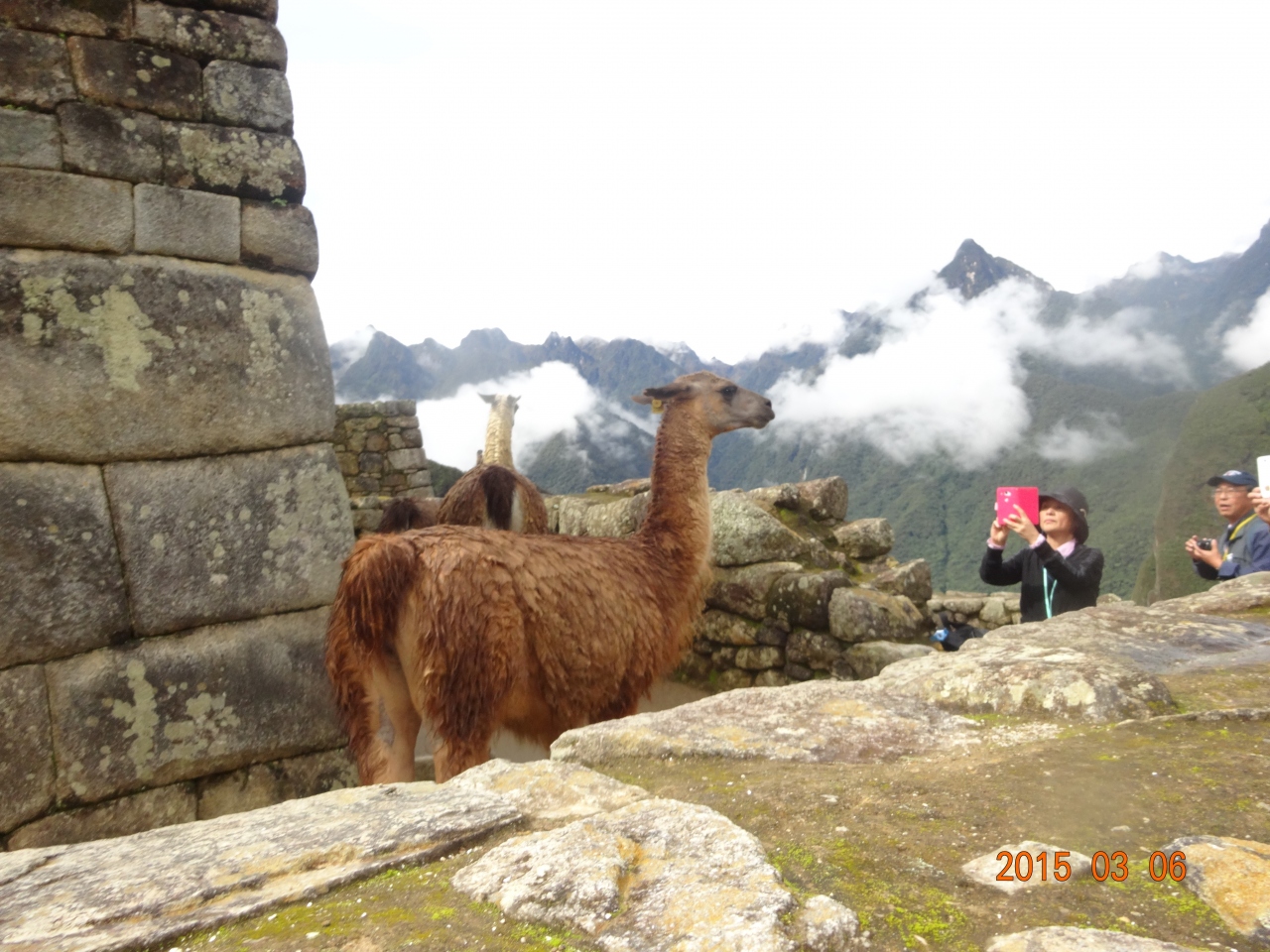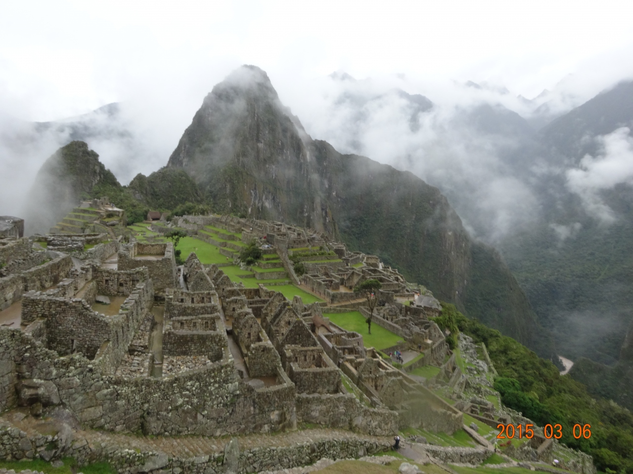 天空の都市マチュピチュ。まさに幻の光景が広がる遺跡である。入り口のロッジで早めの昼食をとり(朝は大雨でマチュピチュ村で一時待機していた)上るころは小雨になっていた。この時簡単な雨具と傘が便利とおもった。見張り小屋のあたりで雨がやみラッキー。見渡す遺跡はきれいで、山々は雲をいただきその景色に感動した。インティワナのあたりでは晴れてきた。「マチュピチュは裏切らない」とのことわざどうりで3つの天候の中でマチュピチュを見物できたことは幸運であった。