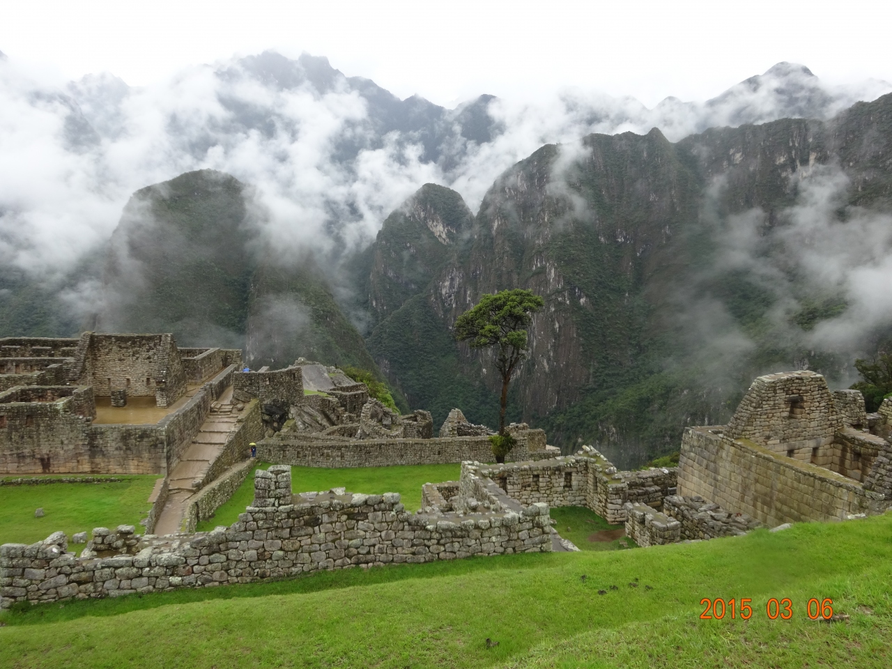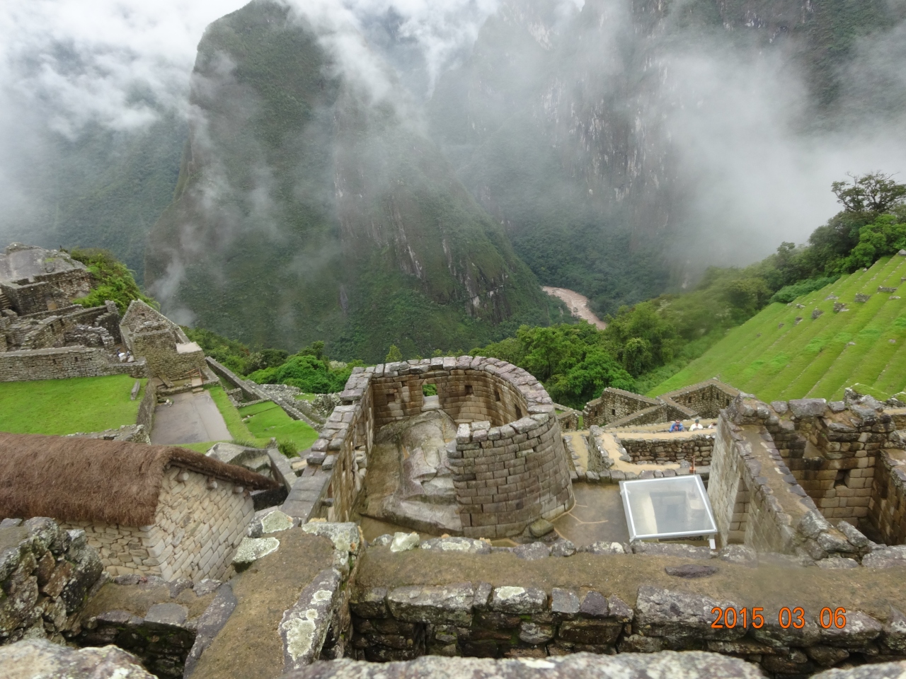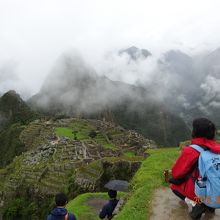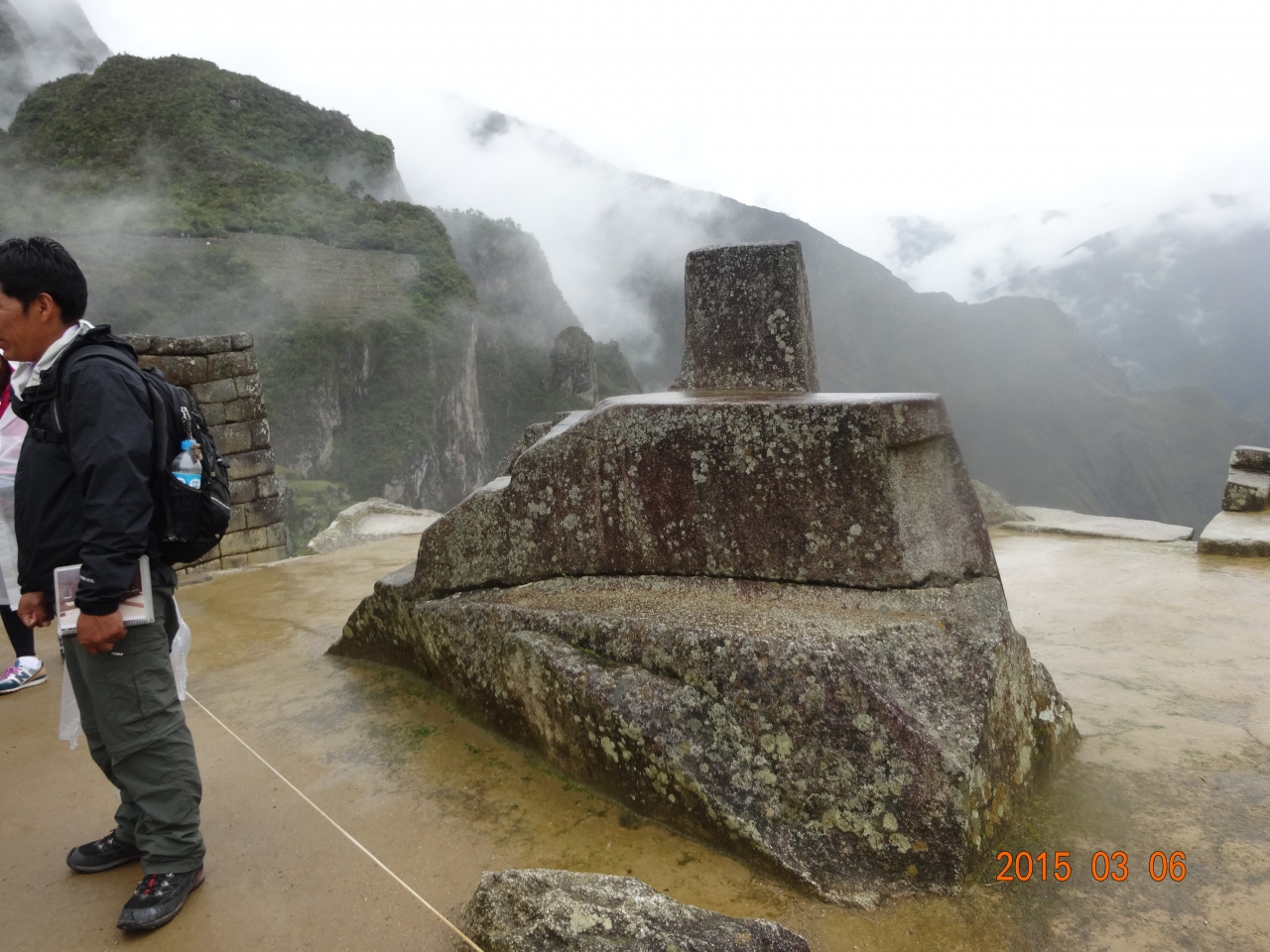 天空の都市マチュピチュ。まさに幻の光景が広がる遺跡である。入り口のロッジで早めの昼食をとり(朝は大雨でマチュピチュ村で一時待機していた)上るころは小雨になっていた。この時簡単な雨具と傘が便利とおもった。見張り小屋のあたりで雨がやみラッキー。見渡す遺跡はきれいで、山々は雲をいただきその景色に感動した。インティワナのあたりでは晴れてきた。「マチュピチュは裏切らない」とのことわざどうりで3つの天候の中でマチュピチュを見物できたことは幸運であった。