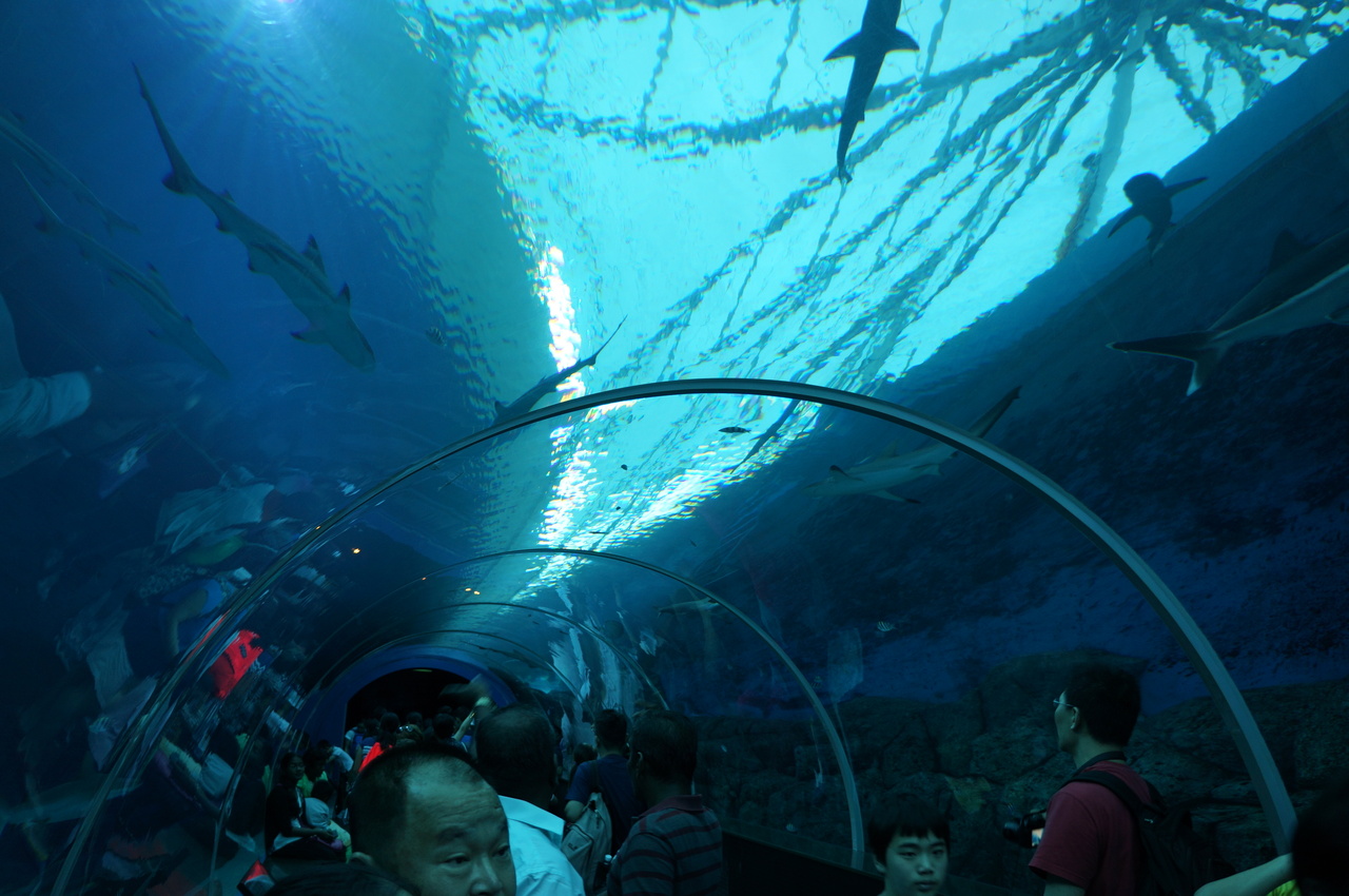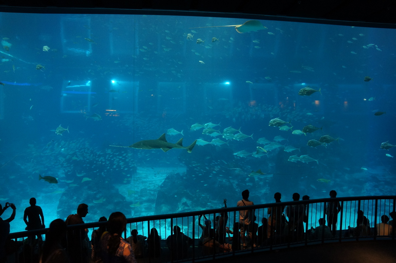 入ってすぐのサメの水中トンネルと世界最大級の38メートルの巨大水槽は圧巻です。